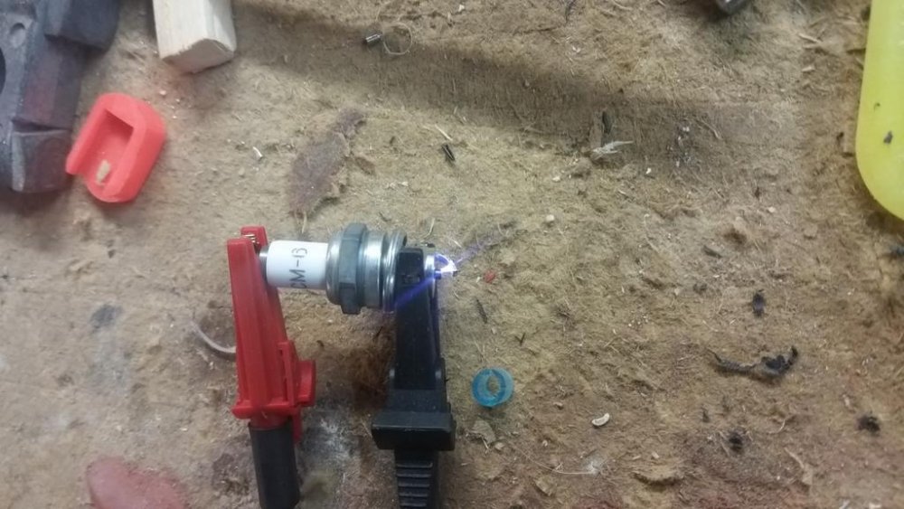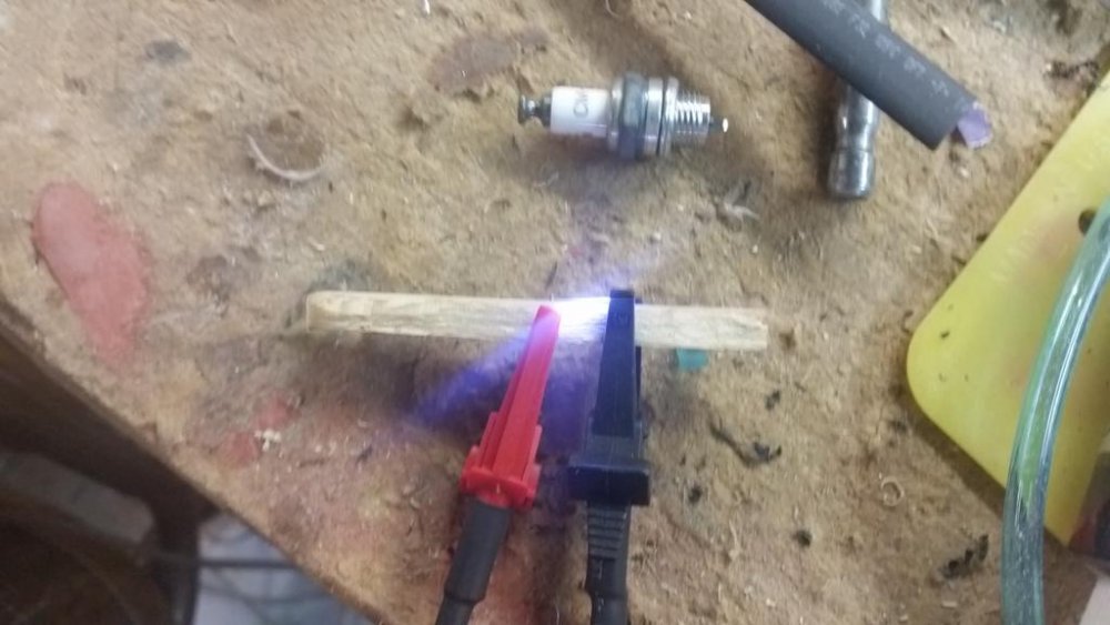 I have now completed the ignition system for the engine. I need a continuous spark to get the fuel to ignite. once the pulse jet is running the flame is self sustaining. this box will stay on the ground and is just for starting. It produces a spark about 3/4 inch long, and has a really hot fire across the electrodes of the spark plug. It is really pretty simple electrically. A 12V battery, A relay wired as a buzzer, which also acts as the points in an old bike, a condenser to try to save the relay contacts a bit, and an automotive ignition coil to step the voltage way up. I also added 4 random flashing LEDs to show that the power is on. I have some "DANGER HIGH VOLTAGE" stickers coming to put by the switch and the output terminals. Next on the list is the Air supply for starting. This will need a source of compressed air and that will need to be mixed with the correct amount of propane to make a nice combustible mixture to blow into the front of the engine. Once this mix ignites inside of the engine I can then turn on the main fuel flow and it should keep running at that point. As soon as I get all of this ground support stuff designed and built I can do the first test fire of the Pulse Jet engine on a test stand. There is still a lot of work to do on the aircraft itself, but that is also coming along little by little. -