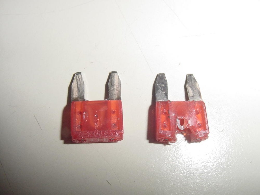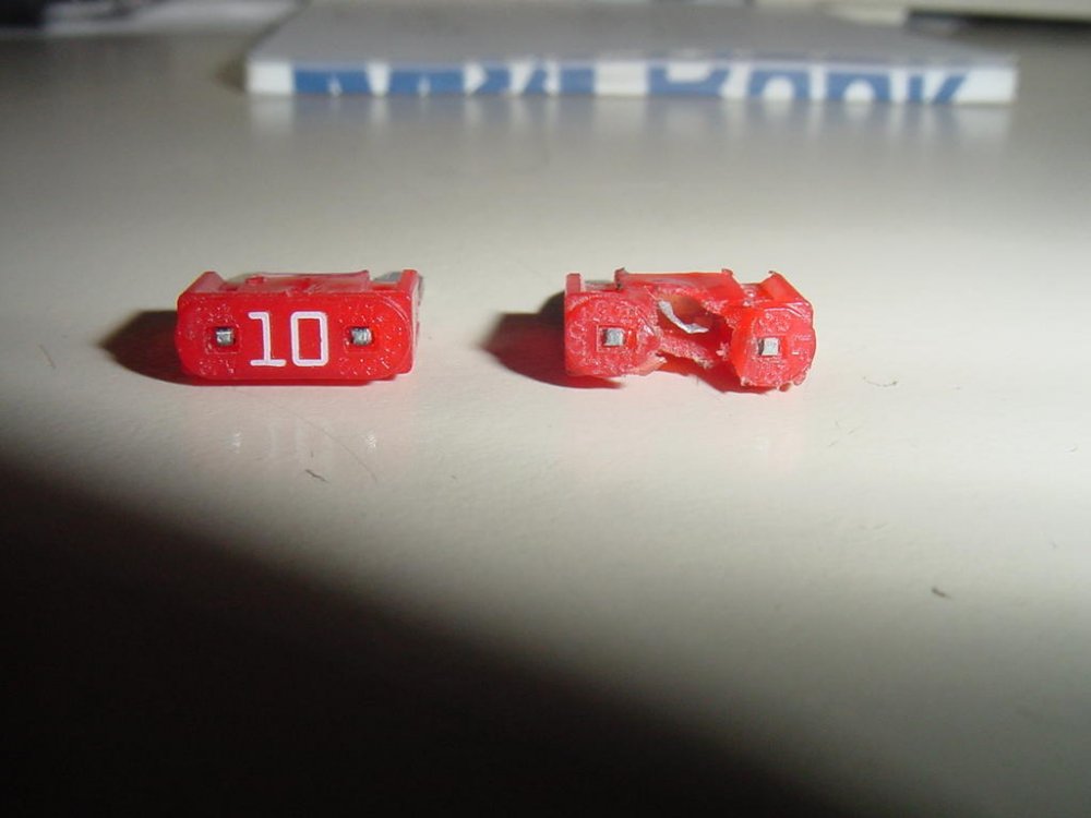 10. These are the fuses that gave me fits, The melted fuse on the right is the one that works just fine, the brand new fuse on the left is the one that tests good but does not work in the truck.