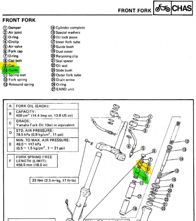 6. I checked my notes from my 2005 installation of Progressive springs. The PVC spacer was 1 1/4" tall. I didn't use it. Instead, I installed the OEM metal spacer with the o-ring that Prairiehammer referred to as the "cap" in the above photo. It is approximately 1" tall. I'm 175 pounds. That shorter OEM round metal piece is indeed called the "cap" and the original longer spacer is called the "guide". Even with Progressive springs, a Superbrace, and a Furber Fix (steering stem washer replacement), I don't like this bike in higher speed sweepers either, especially if there are bumps. It's worse at lower speeds. The front end seems bouncy and untrustworthy. There seems to be a lot of uncontrolled weight up front in the steering assembly, forks, calipers, tires, etc as if the forks are undersized and not stiff enough for this bike. I notice this if I'm at a stop and I give the handlebars a rapid, sharp jerk to one side or the other: I can feel the oscillations in the handlebars until the momentum dissipates. Problem is, this is my first big bike and it has been my first big bike for 20 years, so I have nothing to compare it to. Maybe this is just normal for a bike with 1980s technology and engineering. Following intently.