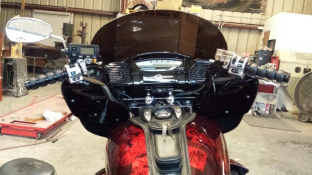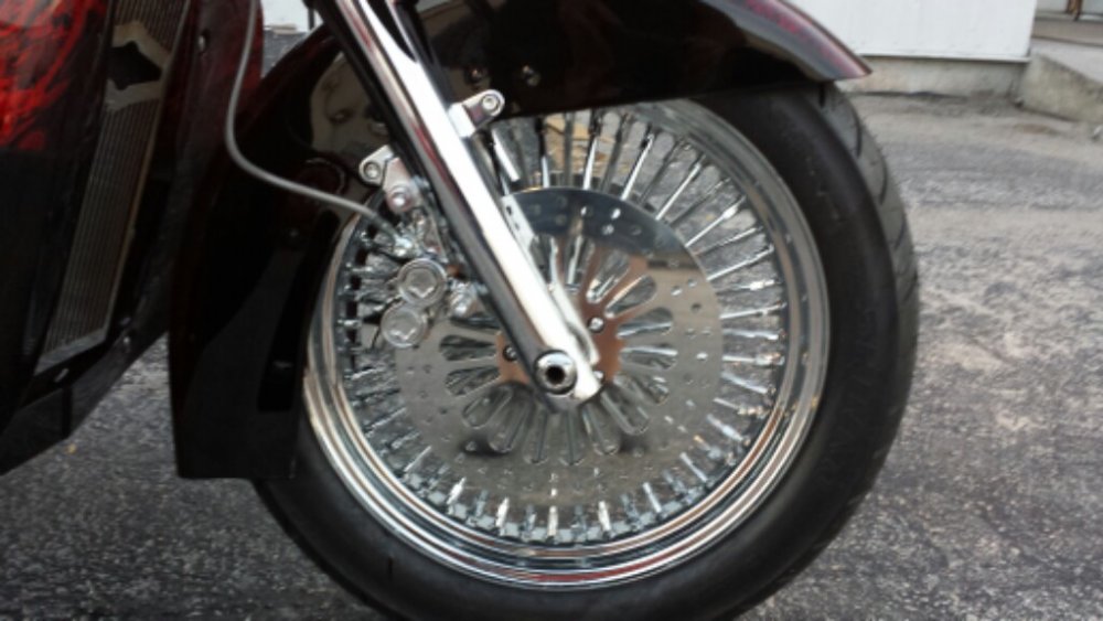 The wheel is from Relentless cycle in fl. 18 inch Harley wheel with 1 inch bearings. Bolts right up using Brian Veney designs spacers. Then move your calipers in with 1/4 inch spacers. Its very easy. I installed a 21 inch wheel on my Road star when I built it. The bars are Krome Werks 10 inch bagger bars off ebay, 1 inch dia. Only $86 and I love them. the stock bars are to low and these put my arms straight out. Perfect fit. Just bolted right up. I'm trying to post more pictures but is not letting me. I'll figure it out.