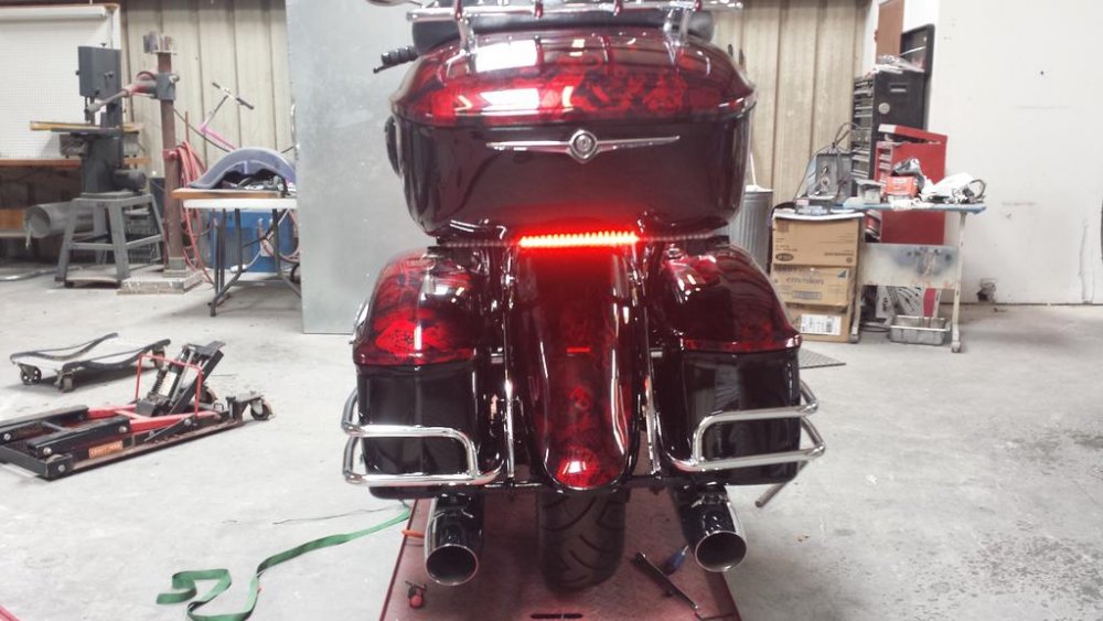 Finally finished my Venture. 18 inch wheel, chrome R1 calipers, diamond cut everything, custom candy brandywine paint with Renegade hydrographic pattern, shaved rear fender and smoothed, led tail, brake and run lights under tour pack, hideaway rear tag.