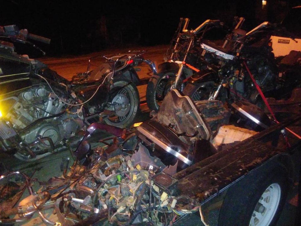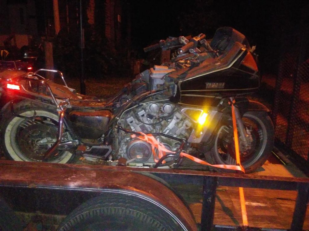 12. I Haven't made any post in a while, been kinda watching 2 builds go on in the forum. One of the builds posted an ad from craiglist and it was way too good of a deal to pass up! Granted I have parts and such I have 3 motors that are locked up. Two of which had the boxes on them. These 2 some how had water sitting in the carbs so I am a little dumbfounded by that. They were litterally out in the woods, now i know these motors are bulletproof! Unfortunately the motors are froze stiff. I don't even know if the motors would be worth trying to free them up. Not even sure how to really go about it except for putting oil in the Cylinders. I flipped one upside down today to the water out of the top side. I also was looking at possibly putting a 99 motor in one of the frames. Would a 99 fit or bolt up? I know the exhaust is different and some other things are different. Just curious if it could be done. Another possibility would be getting a Vmax motor and putting that in. I saw these 3 bikes and thought of my chopper build, I just could not bring myself to tare down Tinker. She is a damn good bike. these bikes as far as plastics good there is only one set of saddle bags and a tour pack that was salvageable the rest of the plastics are brittle and no good. So now I am asking what you all would do.... also I got a bit of trivia for you guys to check out and see if you know what it is!
