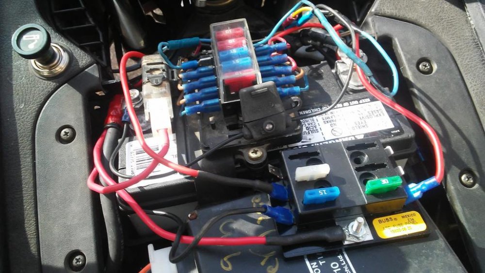 OK i found my build with 2nd fuse block on top of TCI I will see if I can find this notorious plastic piece tomorrow... I also want to add I took my jig saw out and cut the tabs off my TCI box so i could cramb it against the battery, then I put this spare fuse block and centered on top of that and as far forward as i could get it, then but my Faux tank cover on.. I hope this helps, I now have aftermarket TCI and a little different Fuse block with ground tabs attached to top of that, I picked up from local auto parts store I like it as it makes it easier to add things. THe aftmarket is sitting beside the glove box/radiator over flow in the fairing. So all that is on my airbox now is that new fuse/ground block.
