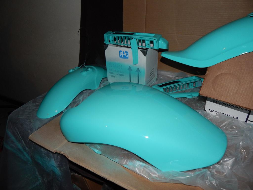 Gray has a lot of range, I'd go that way. Any shades of tan or brown will probably make it look like you sideswiped a 74 LTD Country Squire Woodie. I painted my Vmax for two reasons, first I wanted a safer color than flat black, and I wanted a color that nobody else on the Vmax forum had. I choose a Turquoise and it came out a little lighter than I had hoped, but after I saw it in the sunlight I decided it was just about right. I have never seen a Vmax quite like mine, which was a large part of the point. I have never painted before, not seriously anyway. I went to a body shop and picked out the color and they put it in some spray cans that worked almost eerily well to lay the primer and color down, then I used a can (Probably two cans for a Venture) Eastwood/2k two part clear coat. It comes in the can also but has a bladder inside, when your ready to use it you just hit the button on the bottom to mix the two parts then you have a clock on getting it applied. It worked very well, I'm surprised by the results. Just like on cars, all the work is in the prep. On that clear coat, your going to want to breathe about 0% of that nasty crap, it's wicked toxic so ventilation and a resp would be great ideas for spraying that stuff. All and all it was very easy to work with and although it took a little more time and money than I wanted it's been years and the results are quite lasting. I like the gray idea, IMHO all the Germans have mastered making gray, silver, charcoal and gun metal very sexy exterior colors. Go for it. If you have trouble finding just the right shade try the BMW, MB and VAG (VW-Audi Group) colors. I think it's a great idea.