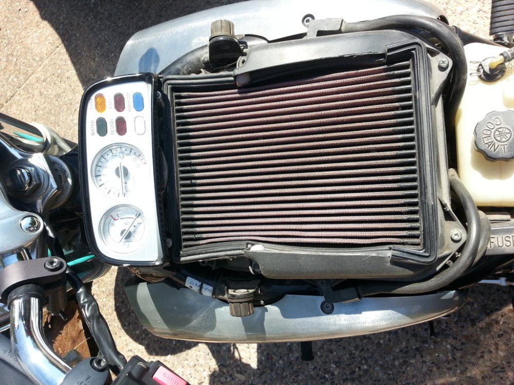 Pods, for some reason I was thinking a drop-in, sorry. Yea, I would start with the air correctors or getting an OEM airbox and filter. I got my correctors from Morleys Muscle, ya just tap them in and seat them. You can remove them later but are not reusable after removed. Just four little brass thingies and my guess is you will be happy, as you would be if you found an OEM airbox. Either way and I'm pretty sure you will see a real improvement. http://www.morleysmuscle.com/ I'll bet he has some in stock. I tuned my Vmax with all his stuff and I'm pretty darn pleased with it. -
