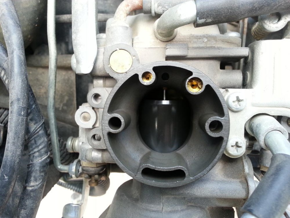 I've done this a time or two on the Vmax, it often works, sometimes not. On the Vmax the carbs can be pulled in about 15 min, on the Venture it's a bit more of a knuckle buster so we'll hope the Shotgun method works. The ride-ability symptoms match plugged jets pretty nicely. As your doing the Shotgun method please note that any time the airbox lid or filter is NOT securely in place it will run like ****, this is normal with the CV carbs as they rely on the intake restriction to run correctly. This wont help you right now but one way to avoid problems with carbs is to avidly avoid ethanol tainted fuels. When I must use it it seems okay if I'm touring and I ride every day, but I do use a couple oz of Seafoam with each tank and before I park it for any length of time (esp over winter) I make sure and run enough pure gasoline through it to flush the ethanol from the fuel system. By following this I've not had to futz with the carbs in a long while, other than synchronizing 1-2 times a season just to keep it crisp and snappy. I hope the shotgun works, keep us posted.