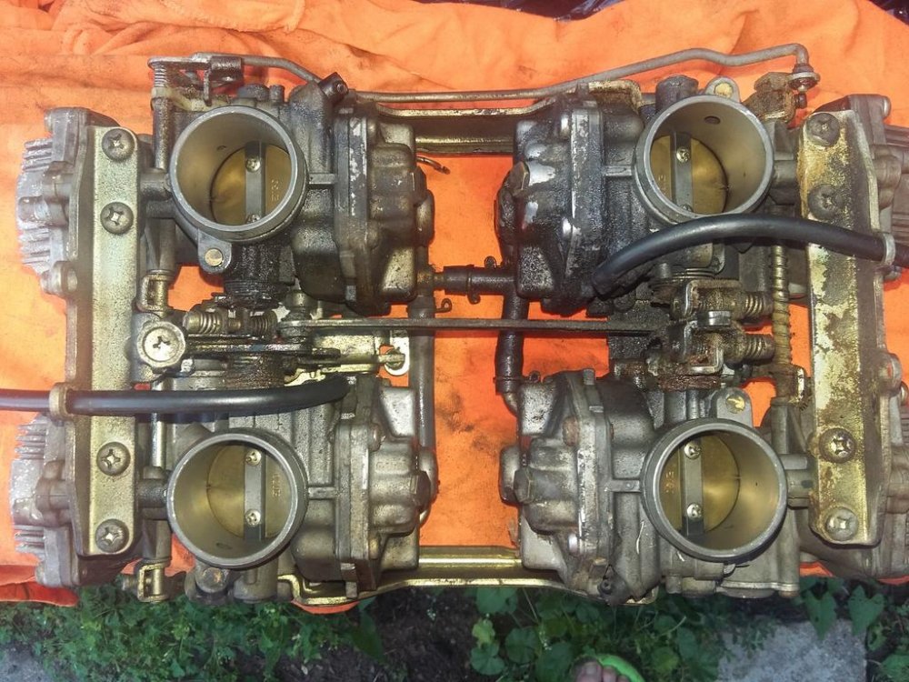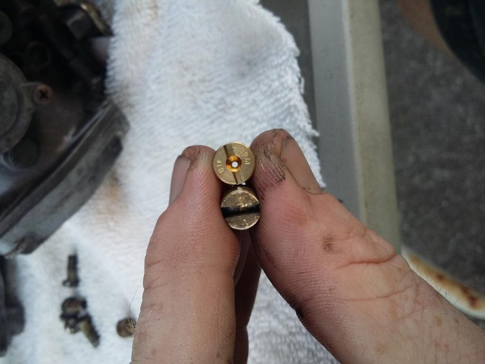 I'm sure glad I found this site! Up front info I picked up a 1987 Venture 1300 that's been sitting for 4 years very cheap. Its my 1st bike & bike project. I know my way around an engine under a hood but very insecure when it comes to this. Now for the problem.... It took little effort to awaken the beast and took it for a short trip of less than a mile. It ran rough but still run. So now that I knew the engine was good I started the fixing process. Knowing the carbs were going to need cleaned, I removed the carbs and removed the bowls, floats, all jets that I seen and soaked them over night in seafoam. the next day I blew air through every hole I seen and made sure it blew out somewhere else and passage ways were open. In the process of putting it back together I broke a big jet that screws down in the needle guide??? Anyway I looked up the part and what I could find said it was the main jet.... I order new ones off JC Whitney and replaced them but they looked completely different than the originals. (PICS BELOW)  I put everything back together and moved over to the diaphragm and slides. I noticed right away there was 4 holes in all four diaphragms as though they were meant to be there. The holes were in like a 4 corner design. Seeing the prices of these diaphragms and not wanting to dump a ton of money I googled solutions and found that some say they had great results with liquid electrical tape because its flexible. So I closed the holes with it. Now all back together and on the bike the bike starts very easy and to my ears the idle sounds clean and healthy. BUT... as soon as you attempt to throttle it up and bogs down and cuts out. When choked the rpms will rise but when trying to use the throttle it just bogs and dies! I been trying to figure this out for 2 weeks now even taking the carbs apart 2 more times making sure I didn't screw something up. Need help badly..... The only thing different between now and when I had it started and running down the road is the diaphragm holes closed with liquid electrical tape and the new jets.. Any and all advice would be much appreciated!!  Pics below show bike, carbs and the difference in the new and old jets.