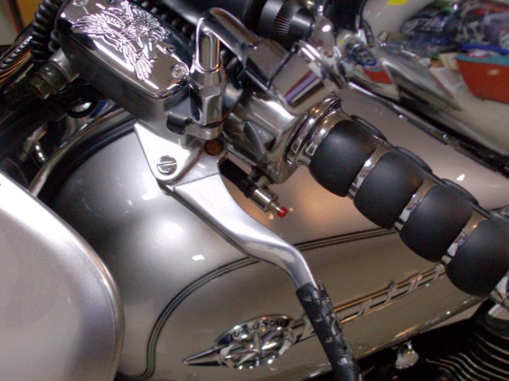 I took the chrome top / cap off an ink pen. Drilled the hole a little larger to match the diameter if a mini push button switch. I then wired up the mini switch and slid it into the ink pen chrome top piece. The wires were about 2ft long. I then filled the chrome top piece with black RTV to make it water proof. The mini switch was then mounted on the left handle bar just in front of clutch lever (see attached Pic- Ref: RED button switch) I took a mini garage door opener and snapped it apart and soldered the 2 wires from my mini switch to the circuit board with the 2 wires that go to the garage door opener switch. I used the hot soldering iron and melted a very small hole in the garage door opener providing access for the 2 wires and the plastic case could snap back together. I used black RTV inside and on th eoutside fo the garage door opener around the two wires making it water proof. Using Velcro, I mounted the garage door opened on the inside of the fairing on the left side just above the 12 volt accessory supply. Even in the rain or washing the bike I never had an issue with it. See attached pic of mini switch made from chrome ink pen cap.