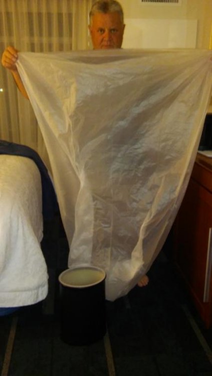 We are staying at a Hampton Inn, located in Chicago. I stopped at the front desk and asked for a plastic garbage bag for the small trash can in our room. She asked: How many would you like? I said two please. This is what she gave me...