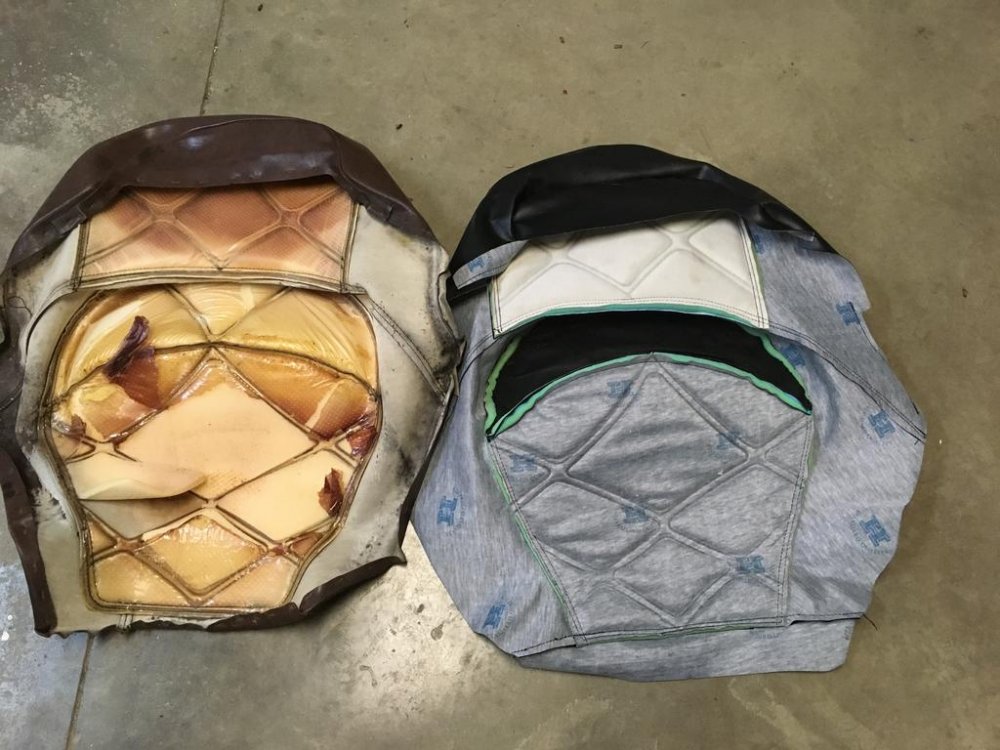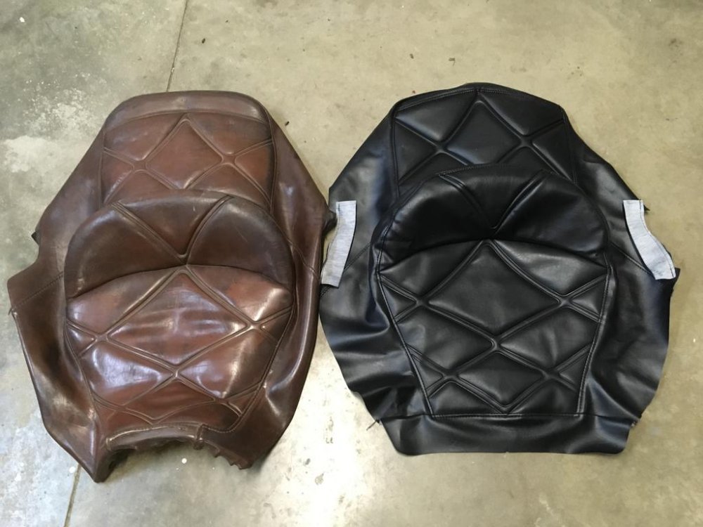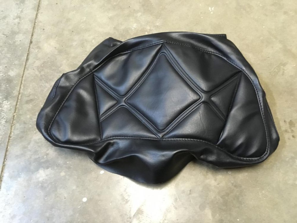 23. I don't know what everyone does about fixing their damaged or worn out seats, but I recently found a company selling reproduction seat covers on Ebay. I was planning on having mine recovered by an upholstery shop until I ran across this company. These are for the 83-85 model years and you can either get them in brown or black. I went with black since I will be changing the color of my bike when I paint it. Not trying to push the product, but the quality is so good I thought I would share in case anyone else is looking for a solution for their bike. These look pretty much exactly like the original including the heat boss pattern. It has the extra foam sewed into both seating areas like the original cover. Also included is the back rest cover. The company is in Cambodia, but they still shipped pretty fast. Here are a few pics, so you can take a look at the covers and make your own decision. I will post a few pics once I get the seat recovered, and comment on the fit. The test fit looked very good, so hopefully my skills are up to the challenge!