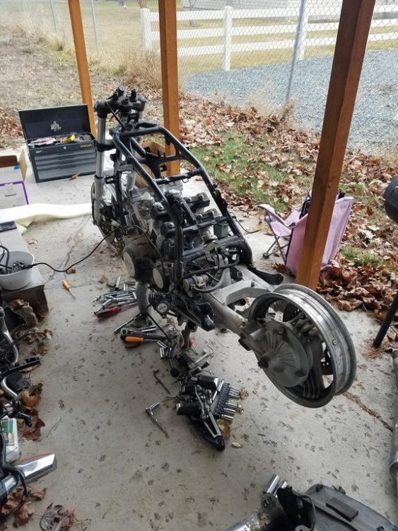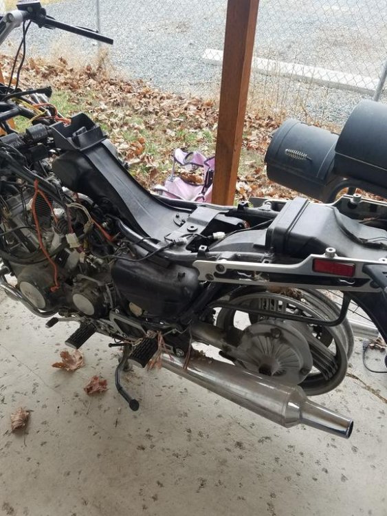 15. Whats up everyone!! So Ive got a new project that I'm an working on. Need some advice. Its a 83 VR 1200. I plan on doing a custom bobber/chopper type thing. the great thing adbout it is I got the bike with almost everything. the only things I didn't get with it is the carbs, seat, and rubber on the wheels. I'm sure there are other things missing. little things. I want to know how to do the exhaust? Is there any reason why I cant do straight pipes or something like that? And electrical. Is there an easy way to bear bones it? How to? I'm going to try to make it as bear bones as I can for the build. Any info would be great. I'm also going to use the extra plastic and extra parts to restore my 85 VR 1200.