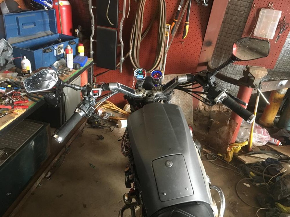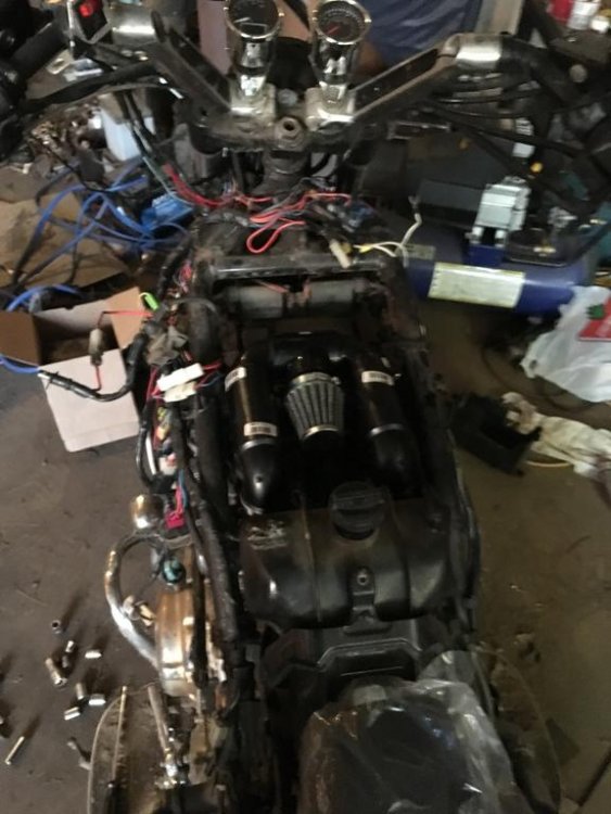 Another setback today I had ordered a led flasher relay the other day which didn’t work at all, so today a received some resistors and got all my signals working buitifully or so I thought. After reinstalling the headlight it seems the hazards work when ever but the signals only work when the high beams are on??? At least I got them flashing I guess lol, guess I’ll have to stripe er all down again and see where I goofed this time. I also painted the front fender and cleaned the rear fender in prep for paint. I may also paint the trunk and reinstall it until such time as I replace the rear fender. Pictures to come I didn’t snap any today but starting to look like a bike again. Still a bit of a mess with wires but I’m ok with that for now. Also removed my ignition which is simply just shoved up under the fake gas tank for now so leaving 1 panel off to reach the key, I do plan on moving the coils to the sides (like zagger) and relocating the battery to the bottom of the bike (also like zagger) however to do that I must first redo the exhaust which I’m not setup yet to do. at that time I’ll move the ignition and other hard to place relays electrical etc in the cavity where the coils were.