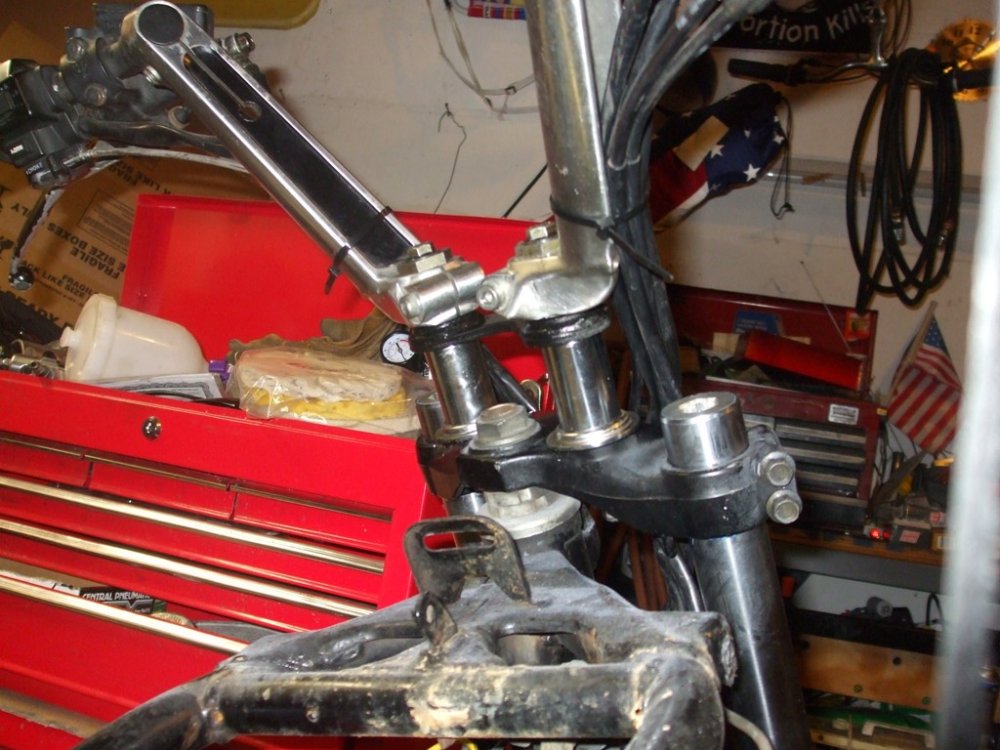 Not quite. Im talking about the actual bolts on the assembly that go through the triple tree. the big black bolts that are screwed into the part you clamp the handlebars to: They are obviously threaded in, but I cant get them un-stuck for the life of me. Penetrating oil left sitting for two days (it flowed out through the gap in the bracket) and they still won't budge with two pairs of channel locks. Are they tacked in or something, or are mine just fused with rust?