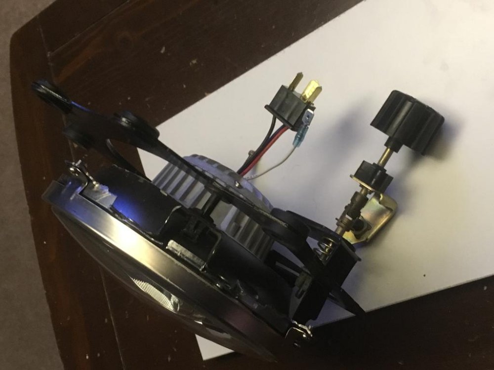 Last year I installed a Vision X LED headlight (like a daymaker) using the stock RSV adjusters by basicly breaking out glass from the stock light so I could drill out the spot welds on the brackets attached to the bucket. I then replaced the bucket with a 7 inch jeep/truck bucket by pop riveting the brackets on to it. Now I have a 7 inch LED headlight that mounts in the stock place with the stock adjusters. So all I did really was change the Yamaha bucket to a 7 inch Jeep/truck bucket.