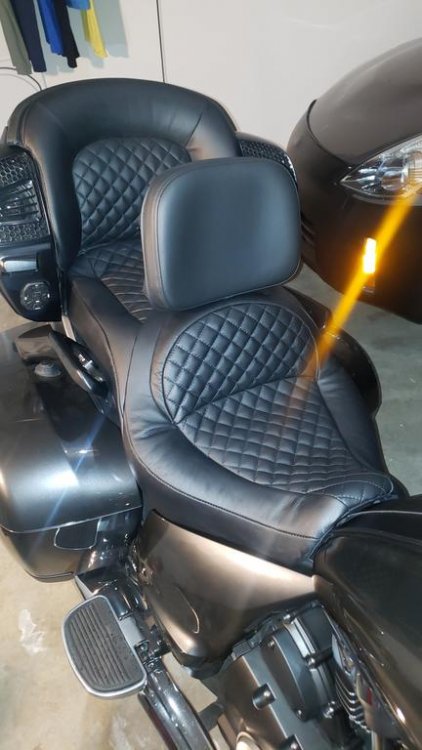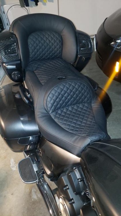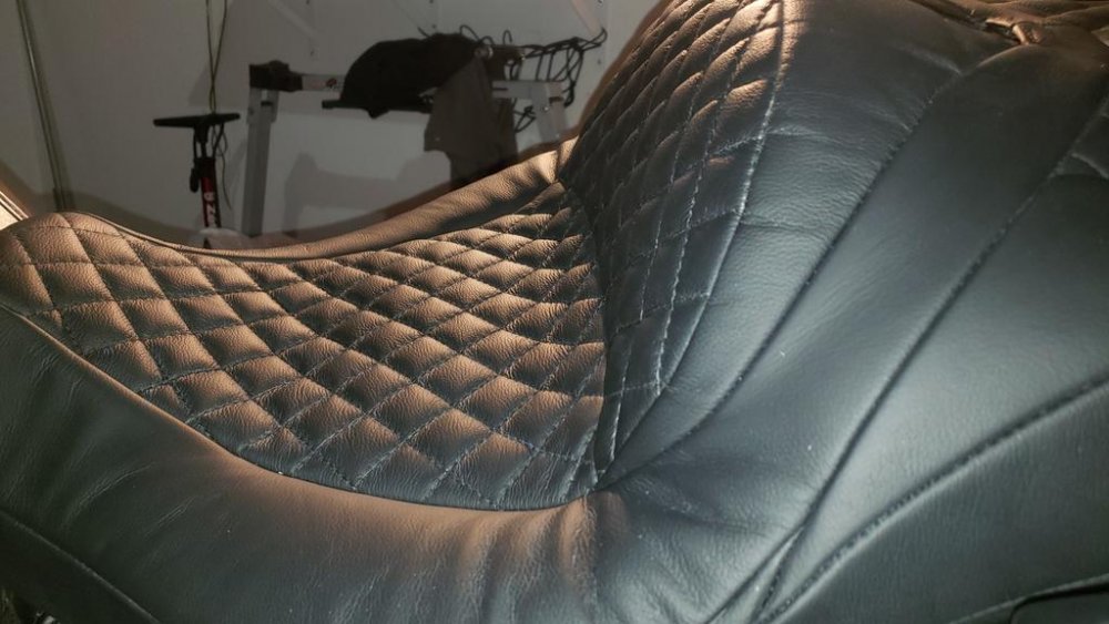 So I have only had the opportunity to ride it about 150 miles (work and the holiday) but it felt pretty good. The area where the seating surface blends into the lumbar pad is 100% better and supports my tailbone area much better. I need to get it out for a 300 + miler and really get a feel for it. Hopefully this weekend if the weather doesn't go crazy. The guy that did it works for Lancaster Auto Interiors. I found him through a guy at work who is a car guy. Mind you this is his first undertaking of this kind, re-designing a motorcycle seat. He had re-upholstered a few. He was extremely busy during the time he had my seat and worked on it a few hours a day, all told it took about 2 -3 weeks from start to finish. To answer questions about shipping I am not sure, as he was local to me. I also supplied my own padding which was close to $100. He can probably do anything you want done like raising the stock lumbar pad, although he may have to extend the frame of it to keep the stiffness in it. I think he would entertain doing more projects like this one. You have to remember I could go there and brainstorm with him with the seat in front of us both. He also works at his own pace with it and has many auto projects he does at the same time so you would have to be prepared to be without your seat for a few weeks. If it is long distance you would need some specific photos or drawings of what you want. I gave him photos of a couple of different seats so he could see the slope from seating area into the backrest. All told it was a bit over 2/3 the price of a Corbin but retained the stock look, factory heating and the diamond pattern on the seating surface looks fantastic live, as well as getting rid of the gap between pillion seat and backrest. I also used leather which made it a bit more expensive. And I benefited from being the first guy to do it. I'll let you guys know how it is on an extended ride shortly