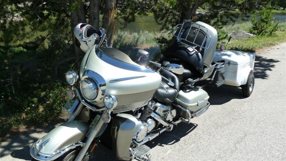 With the rear tire over the axle you're placing way too much weight on the tongue. Too much is just as bad as not enough. Remember we're dealing with an 850# bike here. I trailer in a 10'er also, and the engine sits slightly ahead of the axle. The trailer doesn't even wiggle when underway. In the pic the chock sits about 8" off the forward bulkhead behind the spare. It's a great set-up.