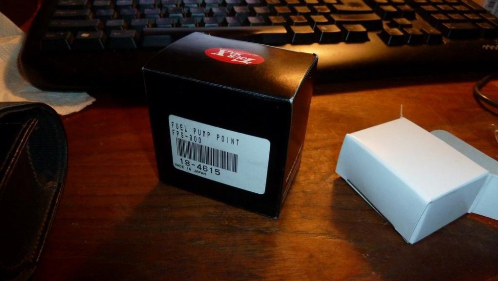 No need to solder anything... The replacement points are identical to those in the pump. The only problem I found was the pigtail wire was crimped at the contact point. A little prying and squeezing will work.... Go buy a right angle 5/16th male to male hose bib from your local auto supply. Take the two leads off the pump and connect them using the fitting. No need for a hose... Like me, if you don't like McGuivering an after market pump in the OEM's place, you might try replacing the points. I picked up 3 sets off Amazon for around $25 bucks a set. I also picked up a used fuel pump off eBay. I carry a spare pump in the saddle bag on long trips... [ATTACH=CONFIG]107205[/ATTACH][ATTACH=CONFIG]107206[/ATTACH]
