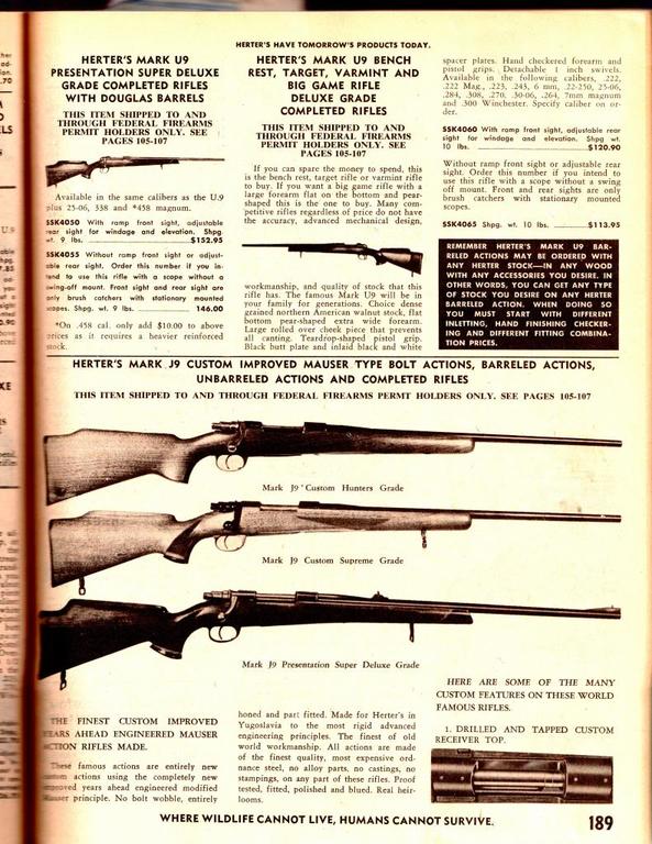Yeah, that 308 is a sleeper. Never heard of it before picking it up. Commercial FN action, Douglas Bbl, Can-Jar trigger. I had a custom 264 with a Douglas and FN, and it drove tacks and shot like a frozen clothes line... Have no doubt that Herters 308 with the Douglas will perform as well ... Wish the knees hadn't given out. I'd be right there with ya...