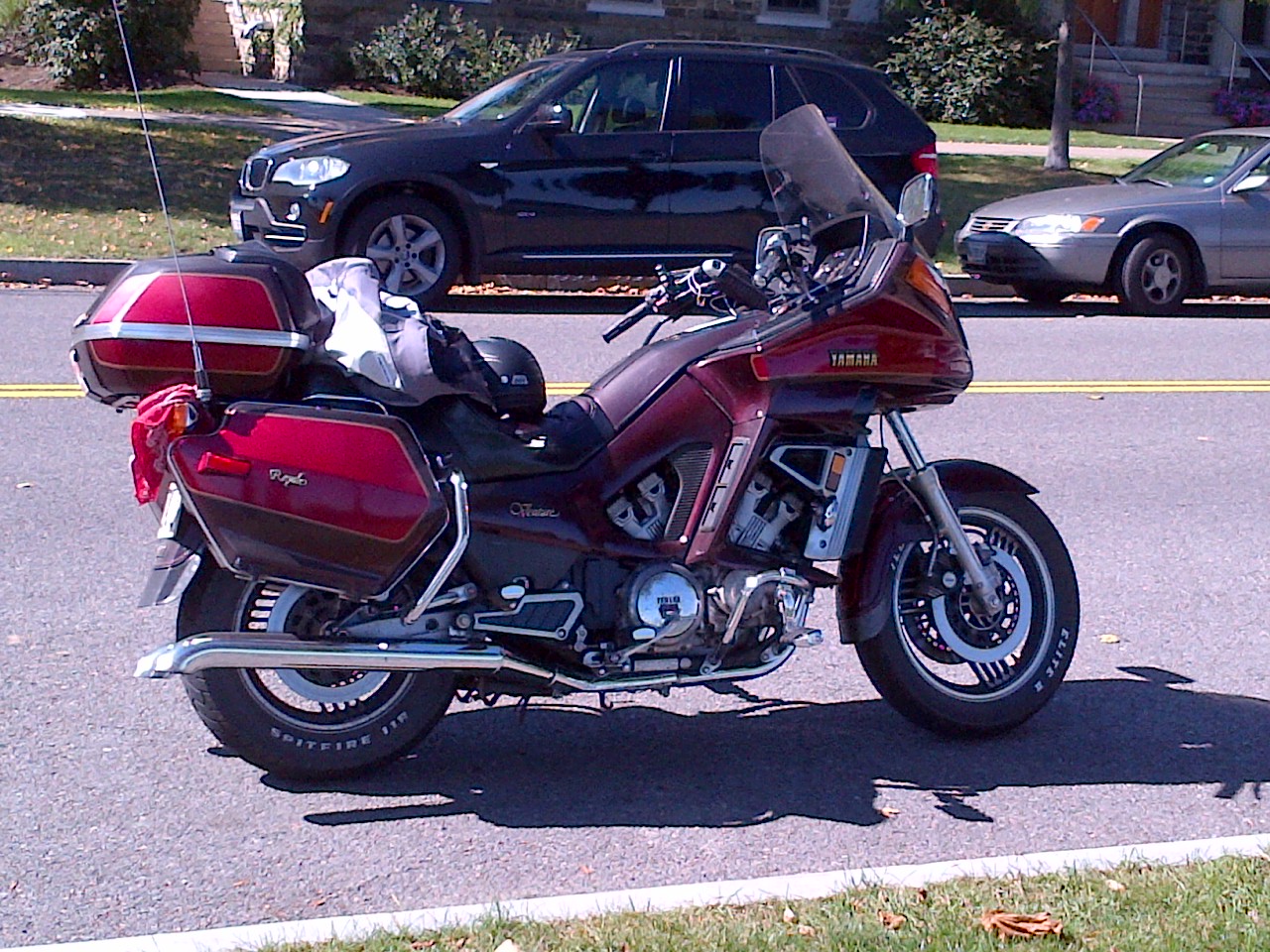 Hi Carl, @Marcarlthanks for the tip. I did get my wife on the back of the 86'VR and she said she found it uncomfortable as the passenger hand grips rubbed on her legs, yet the 84' was always comfortable enough. I thought the bike would be more comfortable than the 84'VR as the 86 has an adjustable backrest as well as passenger floorboards which I thought would make for a more comfortable ride. She might be somewhat biased because of what I previously said about including her in all motorcycle buying decisions. She is also the smart and practical one, as well as this will be my third bike. I also bought a beautiful 1999 Honda Valkyrie interstate two years ago, with her blessing. She figures who in there right mind needs 2 motorcycles let alone 3?? I never thought I would own 3, but when I saw the 86 and the beautiful condition it was in and the price, I could not, not buy it, I just love the look of the old Venture's. I was saving for the new Honda Goldwing or the Yamaha SVTC but soon realized I didn't want to part with over 30k on a new motorcycle, so for about 1/3 of that I purchased two bikes in the last couple of years. Also, sorry for the large pics. I'm not sure how to make them smaller, this is the default size. All the pics I've posted seem to default to XXL size, Mark