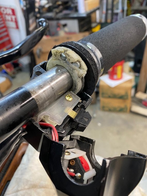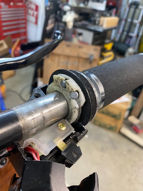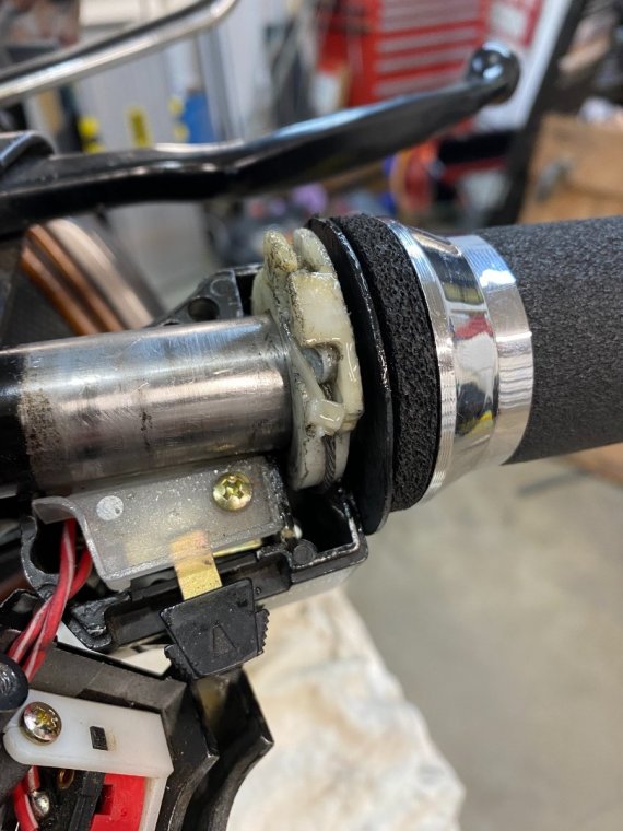 Ok found the problem the white plastic piece finally had enough apparently and the cable was just sitting inside the housing. (Put back in place for the pic.) According to this IPB looks like it’s part of the grip assembly item 19. Or is there an insert I can buy? https://www.youngpowersportslayton.com/oempartfinder#/Yamaha/XVZ13DT_-_1987/HANDLEBAR_CABLE/7f27add3-8aa1-4fc3-ac41-cc44b1eded4d/f86175b4-7082-4ed0-8c30-c8fb2fee8a8b/y -