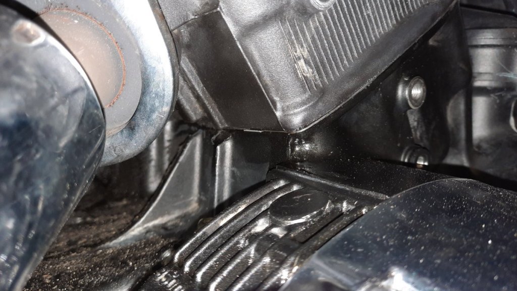 Okay, so I pulled the covers, cleaned everything up and then went for a test ride, about 8km. Pulled the covers and found oil weeping from the head gaskets at the front left cylinder corner and rear right cylinder, also at the corner. I can't really tell if it is leaking further inside the block on the other corners but it does not seem to be so far. So, I'm thinking(praying) that it is just improperly torqued head bolts as there is no evidence of coolant leaking so far. Going to pull the covers, then cams and torque the bolts once the bike is parked for the season. Might as well check the valve clearances while I am at it as well. Now, if it does turn out to that the head gaskets are shot, is it possible to pull both heads off with the engine still in the frame or do I have to pull the whole engine out? I know it would be tight but a quick glance looks like it may be possible. Aric