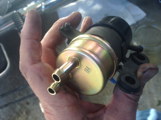 My RSV fuel pump appeared to be failing on my 2009 RSV. This was already a pump that was replaced under warranty a few years ago. I ordered the replacement points set that are noted on this forum. I paid about $30 from Amazon, also available on Ebay. ( http://www.ebay.com/sch/i.html?_from=R40&_trksid=p2050601.m570.l1313.TR0.TRC0.H0.TRS0&_nkw=K%26L+Supply+Universal+Fuel+Pump+Point+Switch+Kit&_sacat=0 ) ==sorry, that link may now be bad== I put them in, but it got worse, would not pump, no rat-tat-tat. I took the old set and filed off a burr, but same thing. So, that said some other component in the pump was bad. My friend, Reggie Brewer (also on this form and a fellow STAR rider) had his pump fail and found one on Ebay that looks like the real deal (not Mr Gasket). AND,, it is about $28 delivered! http://www.ebay.com/itm/331369030356?ru=http%3A%2F%2Fwww.ebay.com%2Fsch%2Fi.html%3F_from%3DR40%26_sacat%3D0%26_nkw%3D331369030356%26_rdc%3D1 And,,,, I see the price is now $21.99 DELIVERED. I will order another for spare. Here is same pump and vendor on Amazon (who I prefer) http://www.amazon.com/Fuel-YAMAHA-XVZ13-XVZ1300-ROYAL/dp/B00SHUYZBU/ref=pd_sim_sbs_263_2?ie=UTF8&refRID=0GE2633P1CMQS74E4SJR&dpID=41-wlYyv2HL&dpSrc=sims&preST=_AC_UL160_SR154%2C160_ He said it installed no problems and he has run it a few miles just fine. I asked if he has to shut off the petcock to prevent gas leak. He said NO, not so far (two weeks). So, I ordered one from same Ebay source. Got it in about 4 days (USPS). I put it in this afternoon. Took some pictures. I got to admit, YOU MUST PUT HOSES ON THE RIGHT NIPPLES. Else it will just rat-tat-tat-tat-tat=+++++++++++ tat. So, once hooked up correctly, it took a few tries to fill the carbs, then Varoom. I added pictures. Note the nipple on the black cap. This is not on the stock pump. As I first had the pump on wrong, this should end up pointing towards the ground, and would drain moisture,,, I guess. Or you could cap it. The way to get the right hose on the IN port is to get the one that comes UP from the fuel filter (left hose), not the one that goes up. That one goes to the carbs not the tank. Duhhh. I ran a dozen miles. Will ride it this week/weekend and see how it goes before a trip. But, it runs fine and I see no gas leak while leaving the petcock on. I will report back if I have any issues. But, this is a VERY similar pump for 1/10 th of the cost of the OEM pump. Below is the link for the pump. Also will edit and put the link for the points. (but it is easier to swap the pump than the points!) Thanks my friend Reggie for coming across this. (EDITED 10/16/15 = found contacts link went bad, added Amazon link for pump (which I used to buy my spare) MG.