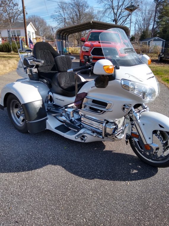 Pearl white Motor Trike. 57,500 on the odometer. Heated grips, heel-toe shifter, AM / FM /CB, intercom (don't have the cables. We use bluetooth) Sirius XM receiver if I can find where I put it. Running boards, full floorboards, cruise control, passenger armrests with cup holder, have cup holder for rider also. Trailer hitch with 5-wire round plug ready for your trailer. Fender bras. Hartco seat covers (nothing wrong with the seats).Very good condition. No body damage. New front tire. Ready to ride.
