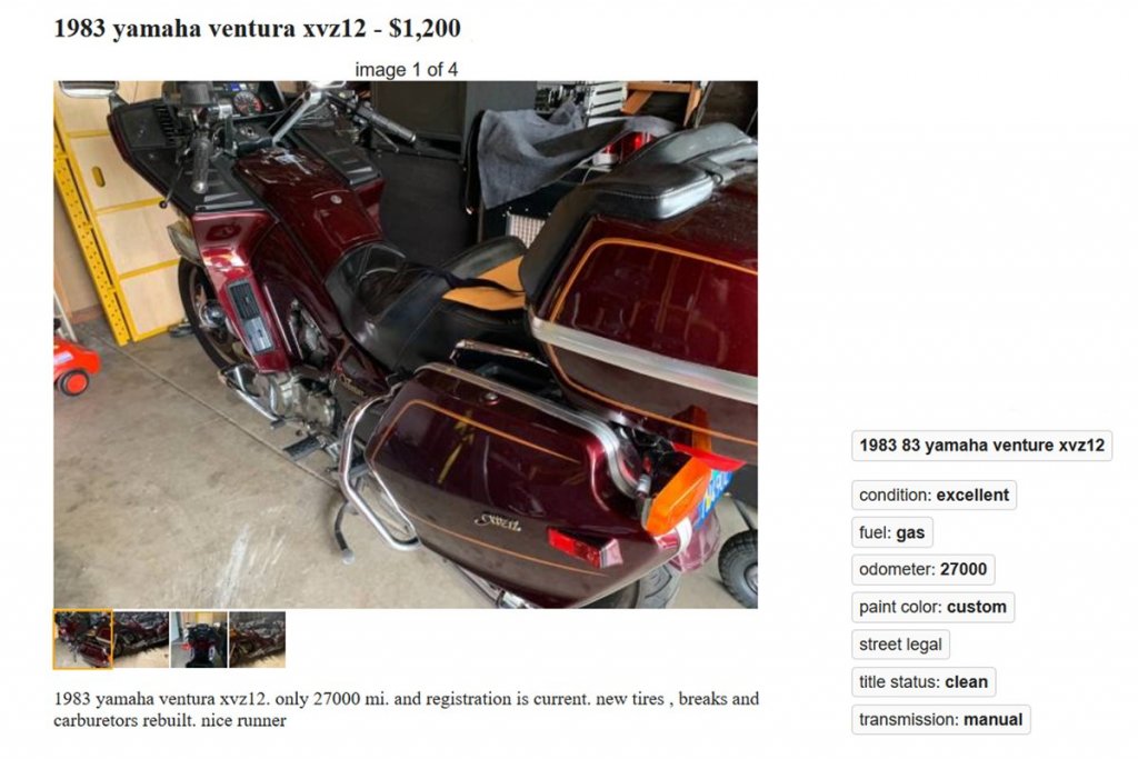 https://reno.craigslist.org/mcy/d/carson-city-venture-royale-touring-bikes/7248849430.html Sold! Hoping the buyers of these bikes and the '83 I missed out on show up on here and give us all an update on their new toys!