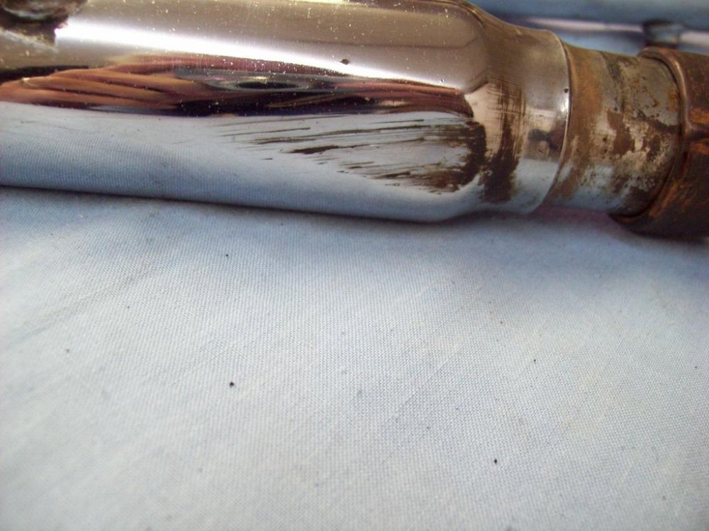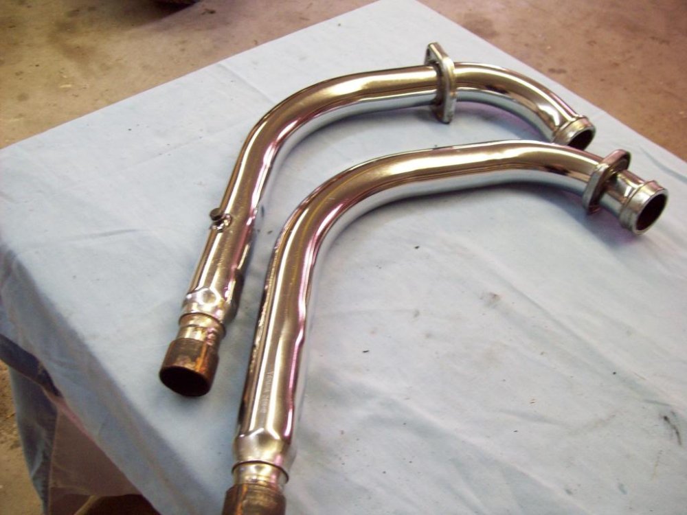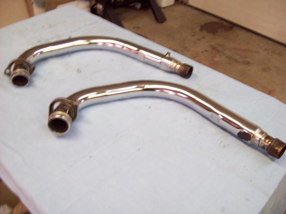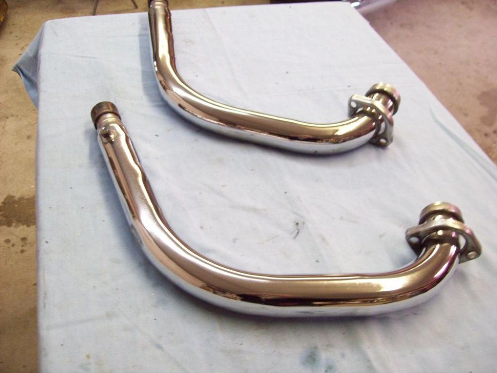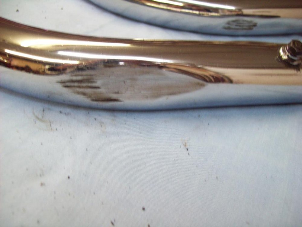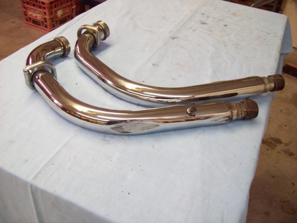 So I found the ones I have. Right and left. Not new pipes, some road rash on either and a rust spot that seems solid enough yet. I think they a quite nice and easily mountable. -