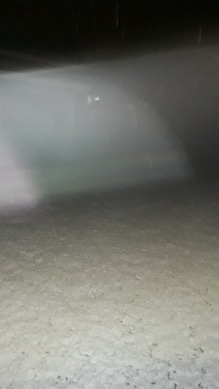 @Flyinfool did done do it today, shot that whitewasher all the way across the lake and land to cover my grass. Nice job @Flyinfool!!! Now the rest of you guys get ready for your shot. This was only a practice, to make sure it works alright. Picture may not be the best, but it's dark out here. The white you see was green a couple of hours ago. So much for summer!!