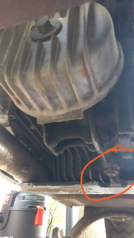 The manual doesn't make it clear, and I tried using a wrench to take it off, but it wouldn't budge. It also looks like I could use a screw to undo it? I also have the oil filter housing pictured, the big silver thing at the top of the picture. Just wondering if that's how I drain the oil, I sprayed it with some penetrating lubricant hopefully it will come off.