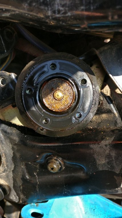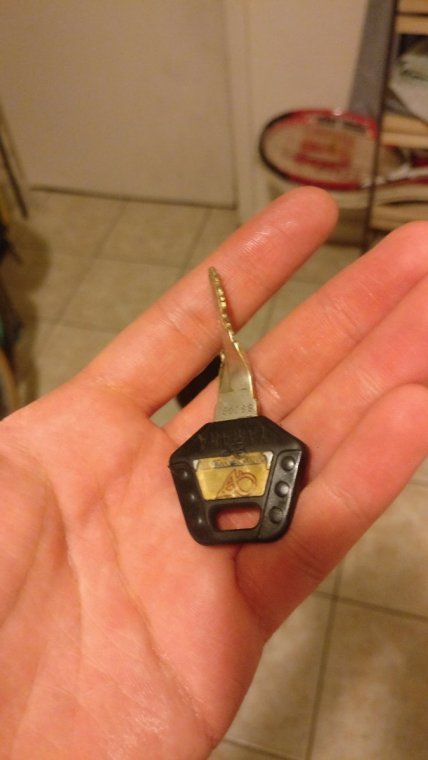 After having the gas cap stuck since I first got the bike, I was able to get the cap off! With the help of a pipe wrench, pry bars, and plenty of cuss words we were able to rip the cap off. Sadly, one of my keys (the uglier one) was bent in the process, but his sacrifice will be remembered forever in this thread. Now I can buy a battery and put gas in the tank so I can try to fire her up. Actually my key is only turning to ACC, and not all the way to ON so I'll have to figure that out once I get the battery on there. I'll be looking for a new gas cap and a replacement key, and thank you to plenty of people who have been major help throughout the process, I could not have done it without you!