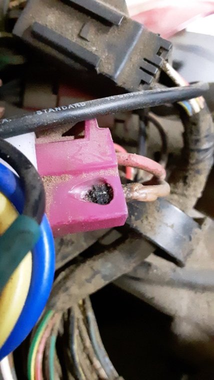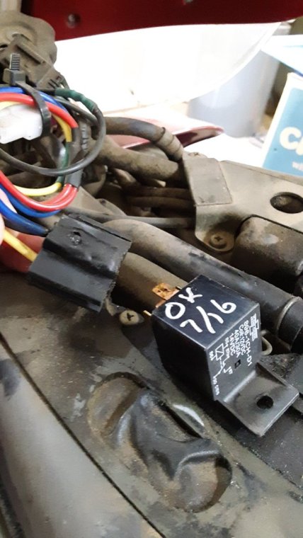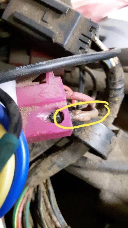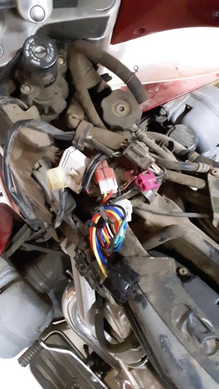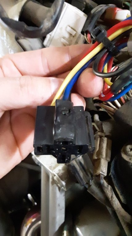 You can't really see in the picture. But this is the brown/blue (Br/L) wire that sends power thru the fuse box... to all the stuff that's not working. But looking now at all the other photos... I'm wondering if the bigger red/yellow/black/blue wires are stock? Or if it's some attempt at an ignition bypass??