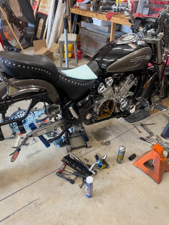 So I got the new and improved clutch from skydoc_17 installed and the bike back together then took it out for a test ride. Wow I thought it ran good when I got it, but now it can put the power the ground and it has plenty of it. I will say this to any one needing a clutch for this type of bike it is the way to go. I let mine go to far and had to hard shift it to much so I’m pretty sure that is what caused the shifter to break. It was an easy fix and the extra attention to maintenance has given me that peace of mind I like when on the road. The clutch handle is nice and firm plus when you shift it only takes just a lite touch to move it. There are a couple of things during the install that you will need to work out. Make sure to install all the parts in the direction it came apart. I did as it said in the instruction sheet he sends making sure all the dots lined up and one thing is the clutch throw out bearing will likely push out due to gravity pushing fluid into the slave cylinder. Push it in with the butt of a hammer until flush with the nut on the end of the shaft. It makes installing the diaphragm spring a little easier. Over all for the DIY guy this is an easy fix. I’ll share a few pics during the repairs and the last few of why I do this. -