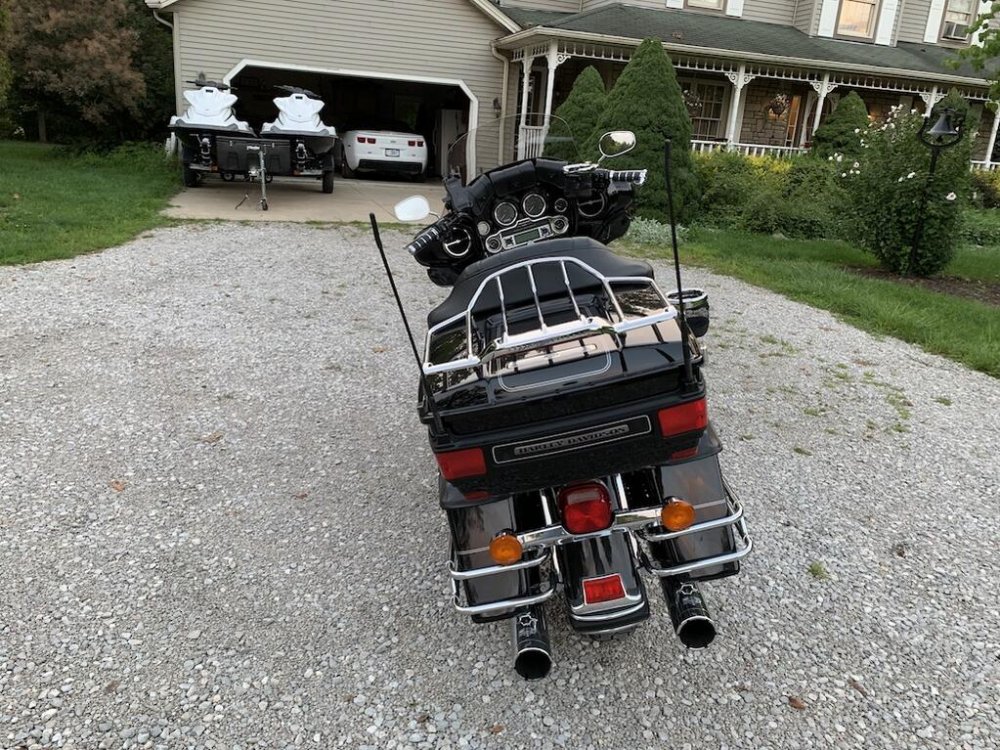 Well, I'm done adding my touches to this bike.  I as pretty happy with it as bought but it did need a few things.  I've added the luggage rack with LED light kit, highway pegs, windshield bags, V&H Monster Round mufflers, driver and passenger drink holders, phone holder with wireless charger, KuryAkyn sliding trunk relocation, Clearview windshield.  I think that's all.  Anything else you see was there when I bought it. I don't like the whitewall tires and was going to paint them but decided it was more trouble than it's worth.