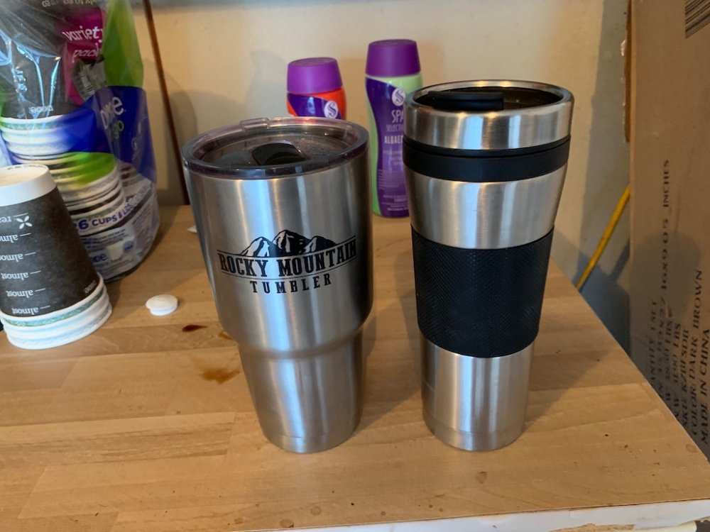 OK...somebody left a couple of travel mugs at MD. Shoot me a PM with our address and I'll send them to you.