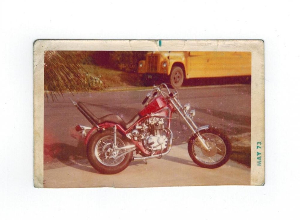 I grew up during a time when "West Coast Vans" were King. The only problem was I lived on the East Coast. My rag tag crew and I did quite a few vans with Beds in the rear, TV's, Reel to Reel tape players, and even an Aquarium in one early 70's Dodge Van. (Dodges made the best Hippy Vans!) Lots of crushed velvet, lots of paneling, and lots of FUR! The pic below is my first time I "chopped" a motorcycle. I took a perfectly good 1972 Honda 450 twin and went to town on it. From the 16" Harley Rear Wheel, to the "coffin tank", to the double rectangular headlights, this was my Saturday Night Cruiser! Proud as punch of this baby because I did the fab, paint and even laced up that rear wheel! Enjoy the pic, it brought back some OLD memories. Skydoc_17