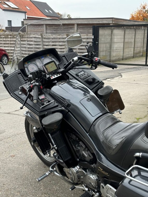 Meet my 1991 XV13TD, fully revised by the previous owner and now under my care. Having had a chopper / cruiser obsession I have now switched interests on big tourer bikes.. This mark 2 is fully functional, complete and drives really well imho. I found a set of original GL1500 smoke tinted Baker Built Air Wings and retrofitted them to my mark 2 with the supplied hardware. Really takes the wind away from the knees and lower legs, this along with simple highway pegs and a shorter antenna which used to be on my dad’s Street Glide. It’s cold and windy winter weather here and can’t wait for long cross country rides in the sun with nice temperatures!