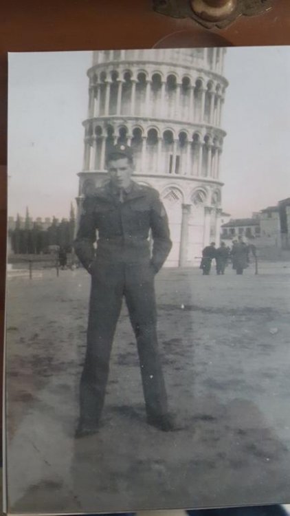 Wife and I went over to Dads' apartment and did some cleaning up and reorganizing for him. He's soon to be 94 and still gets along pretty well, but has difficulty seeing. He has macular degeneration, and can still read if the print's large enough, which I guess is pretty good for his advanced age. His faculties are still mostly there....sometimes he can be forgetful and occasionally gets a little confused, but all in all he's still fully functioning and caring for himself. I live about 3 hrs from him and try to stop by as much as I can, and his closest assistance is his grand daughter who lives only a couple of miles from him. He has a girlfriend who lives about 45 minutes from him, and most weekends he drives to her house and they'll go to dinner, or church or the casino, and do whatever those crazy kids do. Here's the problem....... We're... (myself, and the other 3 children who care for him)... questioning whether he should be driving. I'm not sure that he should be driving, and have heard comments from others that live in his (elderly) apartment complex that his driving isn't so good. I myself have not seen him drive in years now, as every time I'm going somewhere with him he insists I drive. If he were to lose his ability to drive, he'd lose much of his freedom and independence, not to speak of his ability to see his girlfriend. I'm afraid that it'd break his spirit and it'd be the end of him. The place where he lives has a van that comes by to take the folks for groceries and some events, so he would have that option, but I don't know how much of a consolation that'd be. I recently brought up the subject, asking how he felt about driving......if he thought he was competent....and he said "Yes".... So, ....that's the question I've been contemplating..... At what point do you step in and take action? How would one go about it without creating bad feelings? Pic of Dad and I taken recently, then pic of Dad in WWII....not sure where he was in the pic. lol