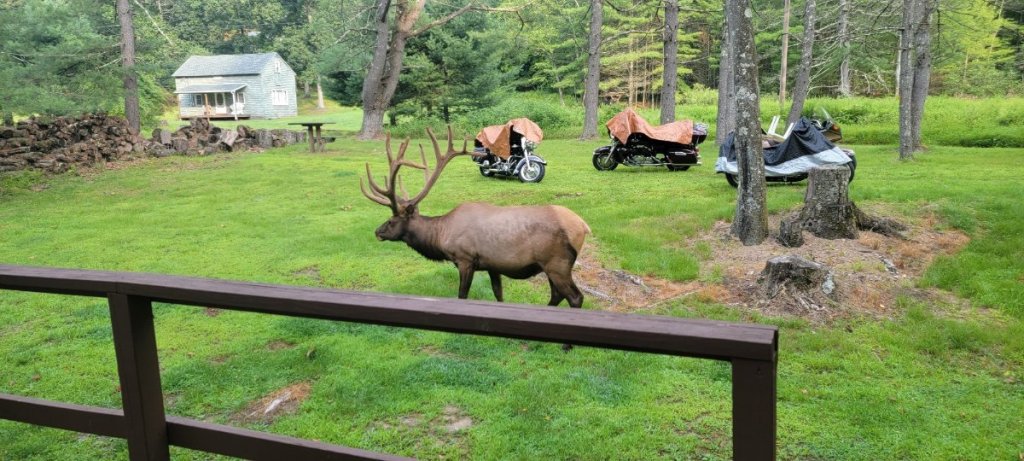 23. Some freinds and I took our annual ride up to the cabin together. Had a great time. Can't beat friends you've had since childhood. Only got caught in the rain once, lol...DOWNPOUR for about a half hour, but we dried out and went back out. Based near Sinnamahoning, travelled a lot of 2 lanes through the mountains, went back to the cabin for adult beverages and cigars. Had a nice bull elk hanging around the whole weekend, ....didn't seem to mind us at all. Already looking forward to next year.