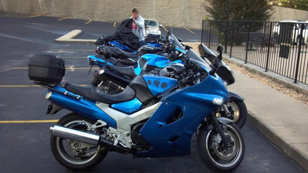 My ZX11 Adventure is a 1993 model with over 61,000 miles. I made a lot of changes; - dirt bike handle bars and adapter using 1/4" aluminum with short risers found on ebay. - Suzuki Vstrom 1000 forks (2" longer and nearly 2" more travel) - adapted Kaw front wheel and brakes - Suzuki SV650 front fender - bobbed rear fender - shorter dog-bones on rear suspension and flipped chain-adjusters to lift rear - 1" dropped driver footpegs - Universal top box with custom mount The picture with me on it was before the top box was installed. I was able to slide the longer forks about 3/4" up in the trees and with the rear lifted to properly match the front, the bike is about 1.5" taller than stock. I still need to extend the kick-stand and center-stand. For now I carry around a 2x4 block! -