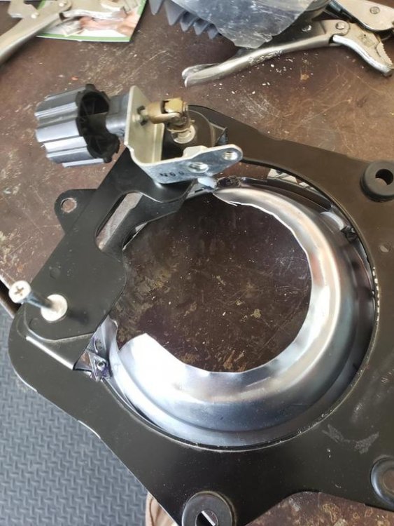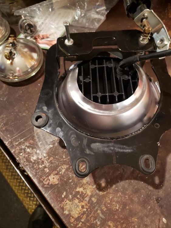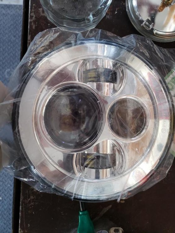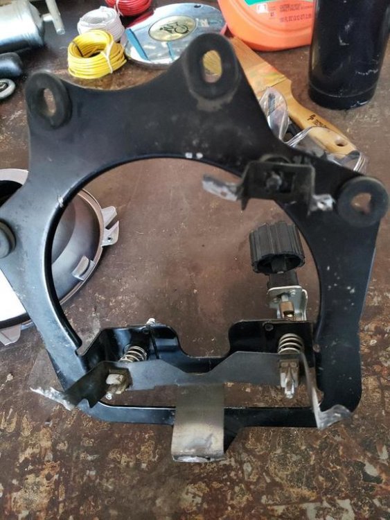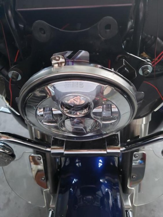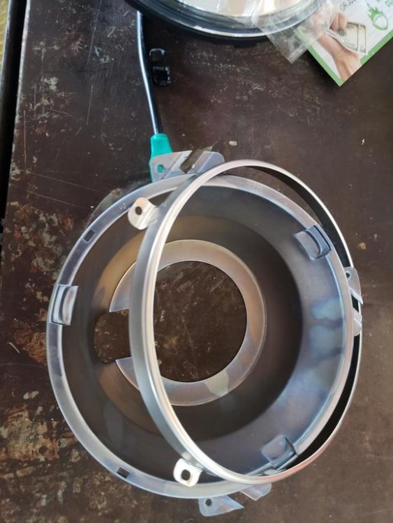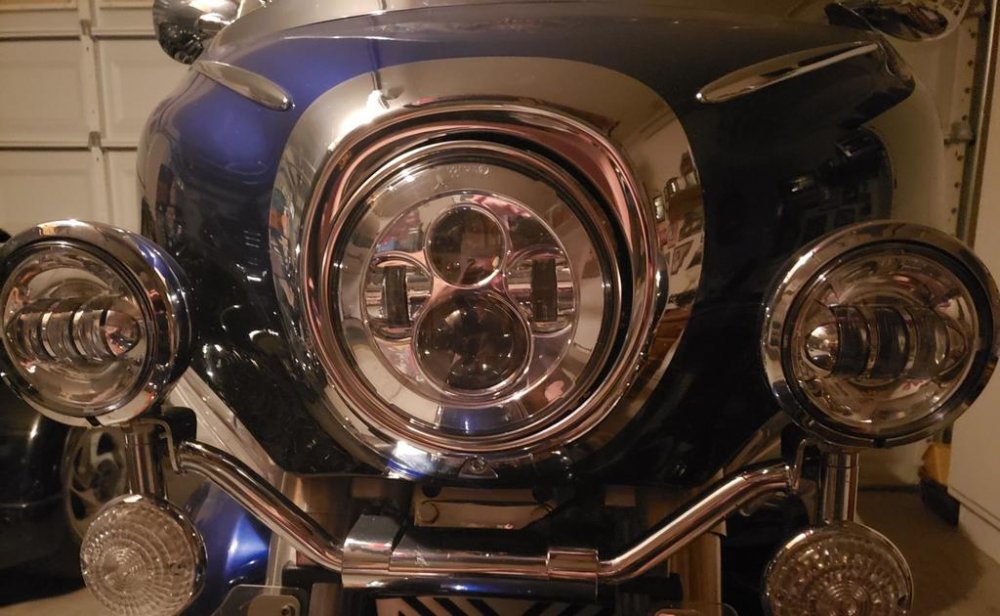 I will post pics of what I did and write out how I did it and if is worthy FREEBIRD can be posted in the Technical library. O.K. I got it done and hope this may help someone else. It is a job for sure but well worth it headlight and driving light set I bought on Amazon Prim. https://www.ebay.ca/…/7-inch-Headlight-Mounti…/163339540192… This is the replacement ring I had purchased for the new headlight. You cannot use the old ring or attempt to use old light housing because you need the locking tabs for the new light to mount. The driving lights more or less plug and play. When taking apart the original light housing first thing is to remove the plastic retainer on the top of light housing. DO NOT BREAK IT and be careful with it treat it like gold. To remove it mark the top with a marker then you have to put your thumb in behind the plastic and take a small screwdriver and push in on both sides while pushing with your thumb. Once off put it in a safe place. I broke the glass out of housing and I used a propane torch on the back side of light to heat up the rubber glue so I could scrape it away to get to the brackets to Dremel. I cut the light housing brackets off with a Dremel to remove old light housing off old headlight. Draw a center line down middle between the two mounting holes and the new housing to line up mounting bucket to clamp housing brackets before drilling and pop rivet. I also held the new headlight in place in the locking tabs mounting bucket to insure center of headlight and the center lines lined up. I had to cut the back side of the new housing out to accommodate the new light and bend the flange and put it on work bench and hammered it flat to be able to clamp the housing to the mounting bucket and make sure your lines line up as perfect as you can to drill 1/8 holes for pop rivets. While clamps are on drill holes and pop rivet housing and mounting bucket. After you have it pop riveted and it’s to your liking now you can put the plastic holder on the shaft and slide it into the bracket. Then put outer ring on and screw in place then mount on the bike. Trim the tabs down were the screws go in and bend them back so they do not touch the chrome headlight rim so you have room to adjust the headlight up and down. If any question ask.