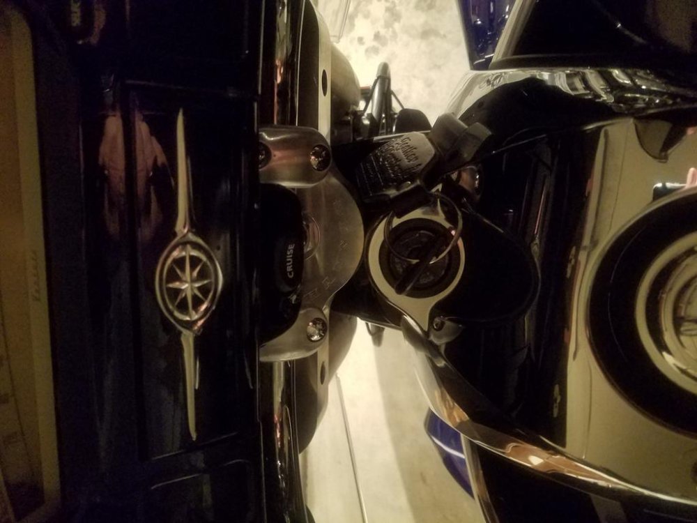 All the bling I have added. It is a UTOPIA back rest and is very comfortable.Has no Reverse, except my legs. It is a TRI-WING conversion. I bought it off of a guy in Arizona and he had bought it new. Title was screwed up from the state of Arizona and it took me 3 months to get it straightened out. Could not ride it with out it being legal. I also stripped my Midnight down before selling it. The bling came off my 02 MIDNIGHT. I am and will ride the wheels off of it. Had a hard time selling my MIDNIGHT with so many miles on it. But its to a good home. I told him to join this site but he says he cant afford it, His loss. THANKS for all the complements I plan on adding more bling as time goes buy.