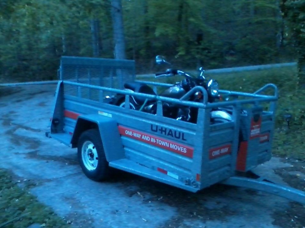 Since I have to show pictures here before anyone will believe anything.... Here is the Vulcan 900 Classic arriving at my domain. By the time I got the tie downs off and the Vulcan off the trailer it was too dark for more pictures, so those will come later. I'll also mention that the dealer I bought the Vulcan from, Mid State Motorsport at Cookesville TN has both a 2018 Venture Touring and Eluder sitting in his shop, as well a very nice used 2006 Midnight RSV. I got a good deal from them.