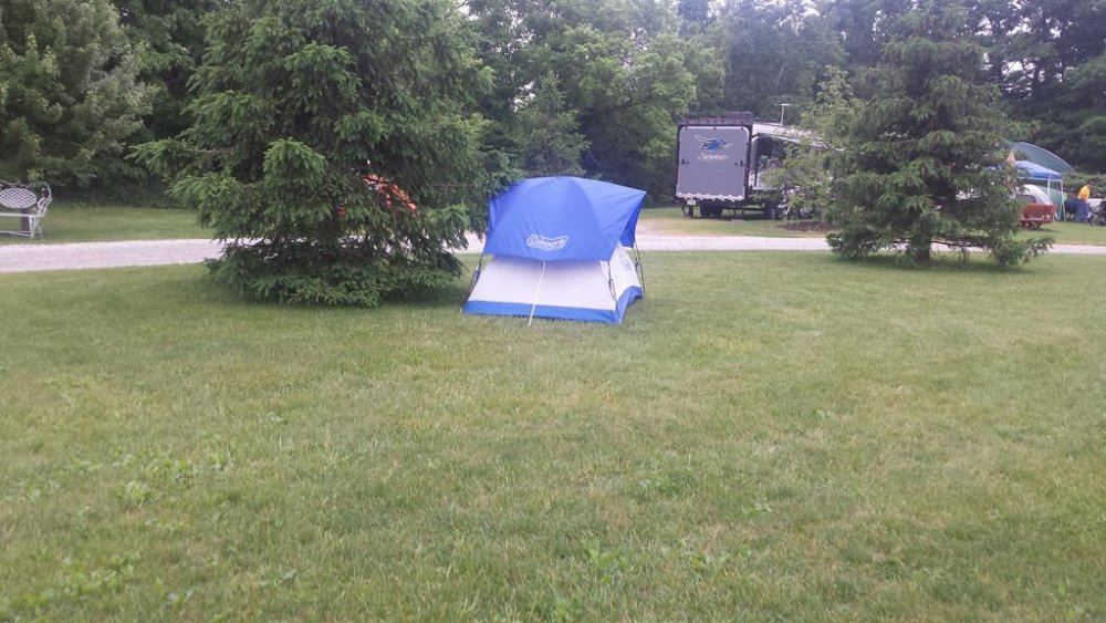 Got home around 3. Had a light drizzle of rain around Cayuga. Set up tent trailer to dry out also.