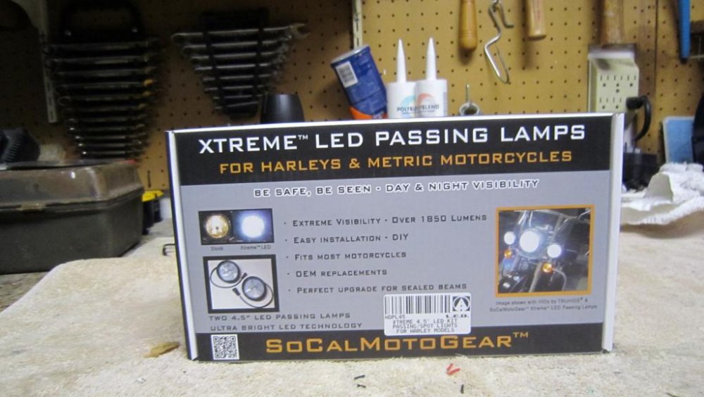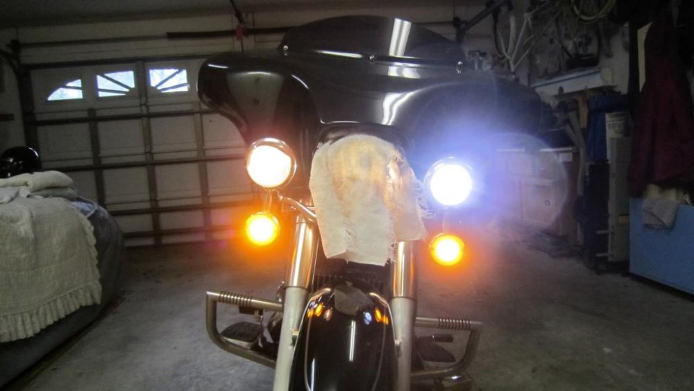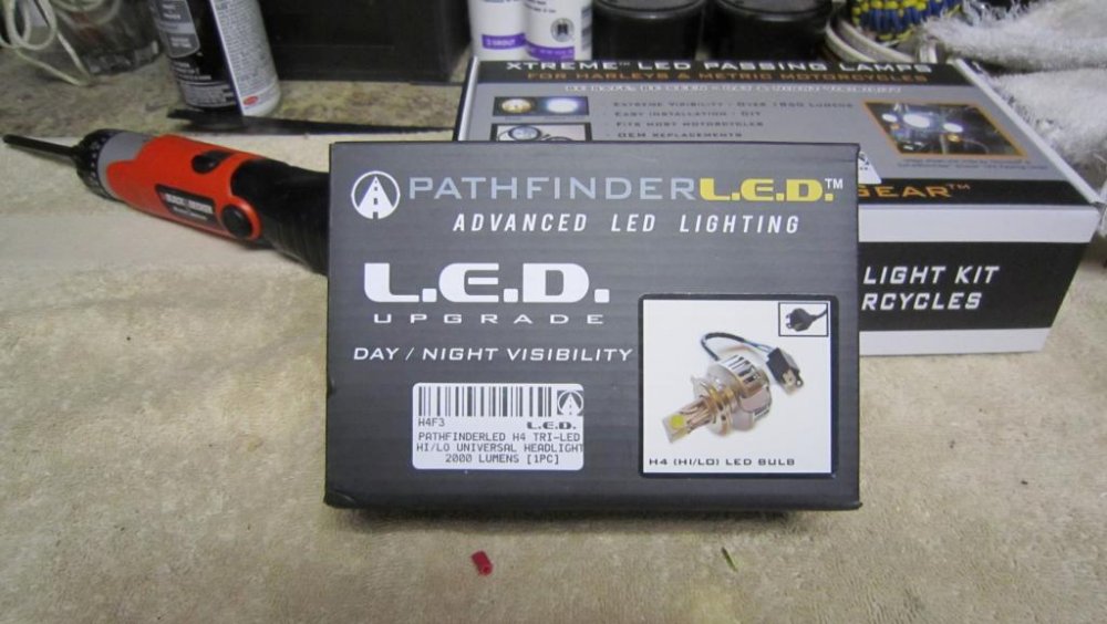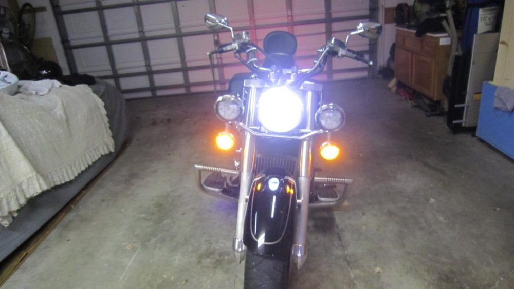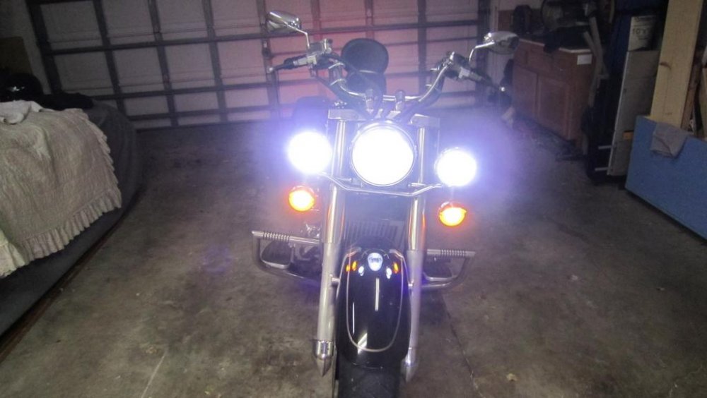 I finally got my Christmas/birthday present installed. I originally ordered an LED headlight (H4hi/lo) from Peterbiltparts.com. It fit great and was easy to install. The light pattern wasn't very good on low beam but the high beam was fantastic. I returned it with no issues. I continued my research and found LED headlight bulb and driving lights from SoCalMoto.com They were available from J&P Cycles so I ordered them. The difference is like night and day. Here are some pictures of OEM and LED. Headlight http://www.jpcycles.com/product/207-526 Driving Lights http://www.jpcycles.com/product/207-423