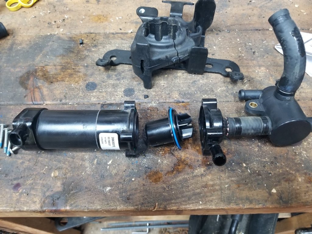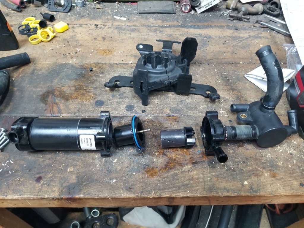 I bet ya'll thought I was done with this. for the curious among us I had to find the failure. the pictures tell the story as you can see the 1st picture is the pump assembly together, 2nd picture is the pump separated from the motor, 3rd is the pump blade assembly separated from the plastic housing and last is the cracks that allowed the magnetic coupling to spread and lock up the pump. I tested the motor and it will run.