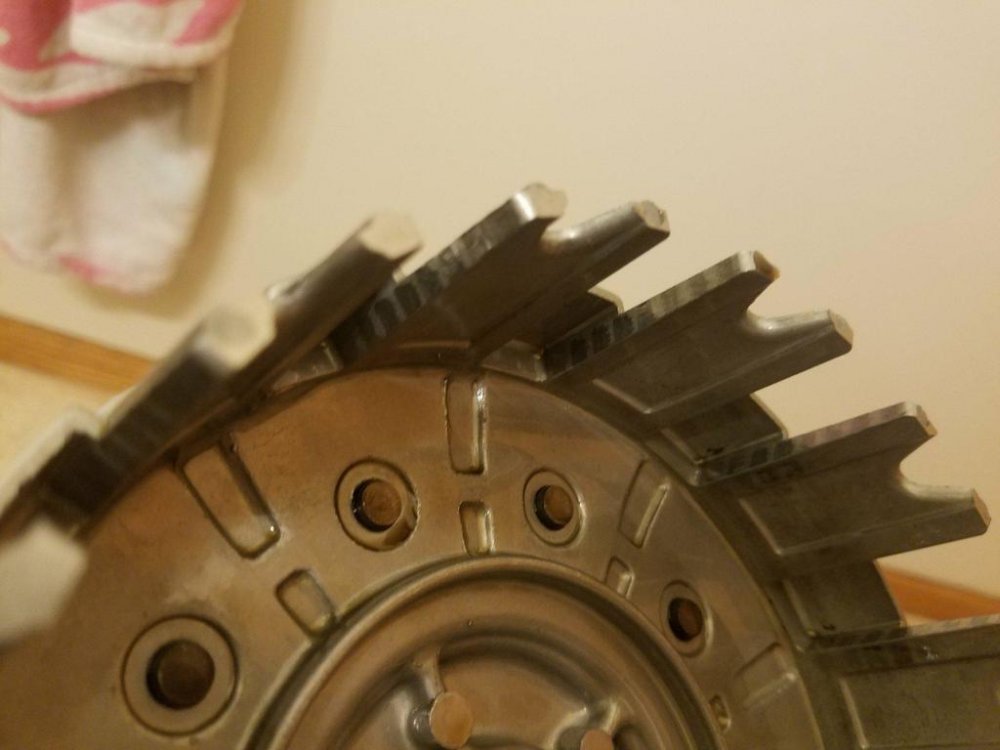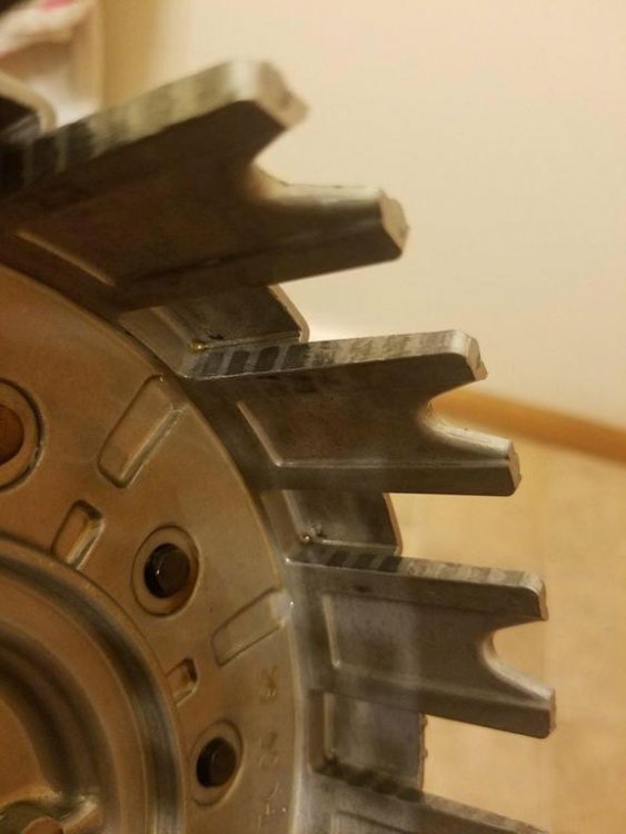 Screwed up, need help!Chaharly replied to Chaharly's topic in Venture and Venture Royale Tech Talk ('83 - '93) There's a few pictures of the old basket! Looks like it coulda made for a possible chattery clutch? I ran my nail up and down a few of the surfaces and I there were a few spots that are going to need attention. I decided to go ahead with putting the new basket in instead. The new one had a little notched part on one of those fingers so I sanded it out as well. I got it all installed and its mayyybbbeee(?) a little better. Still sort of tries to roll in gear, maybe not as bad. I'm gonna keep trying to work air out of the clutch hydraulics. The only other thing I can think is that the Skydoc clutch upgrade kit eliminates a shim, a retainer wire, and "half friction disc" at the back of the clutch basket and in place substitutes another those three things with a full friction disc. I guess its to reduce the friction zone of the clutch? Would that possibly eliminate some of the precious clearance in my clutch? I've been tempted to buy a new half friction disc, retainer wire and digging the old shim (spacer) out of the trash and trying that