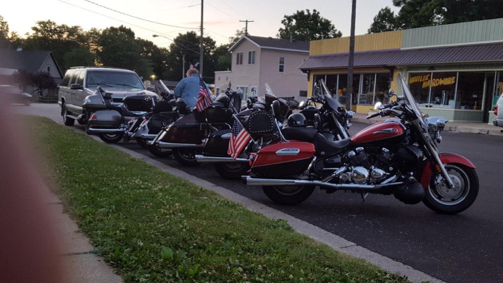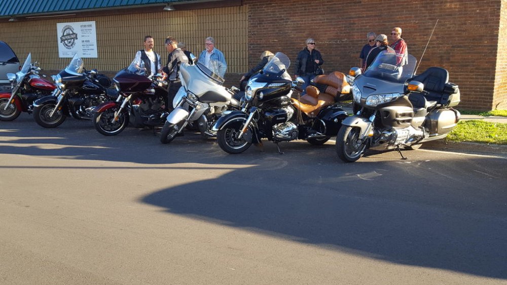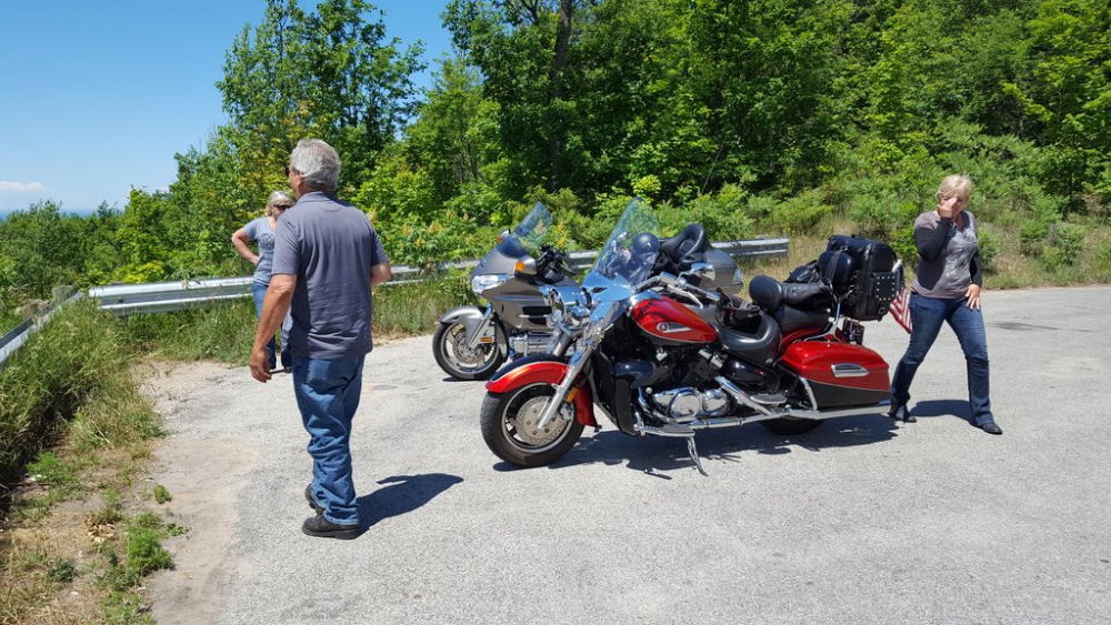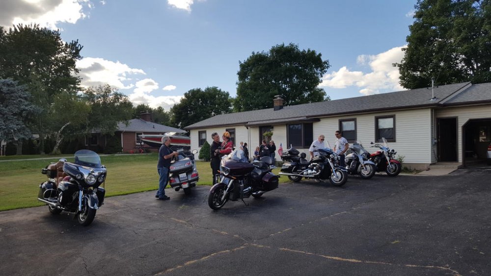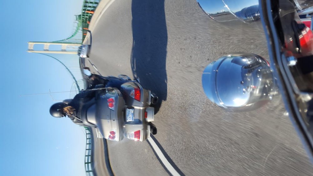 Friday evening had a 75 mile ride with almost all of our peeps, started in our driveway, List of bikes include: Our 07 RSTD Midnght Venture Victory Cross Country Indian Roadmaster Goldwing Honda VTX Then Sunday Morning at 8am, we took off North with Mike and Viki with the Goldwing, ended up across the Mackinaw Bridge, stayed in St Ignace and coming back today, did 650 miles, the weather was perfect and so was the company. So allinalll, a Great Holiday Weekend for us, Hope yous was the same!