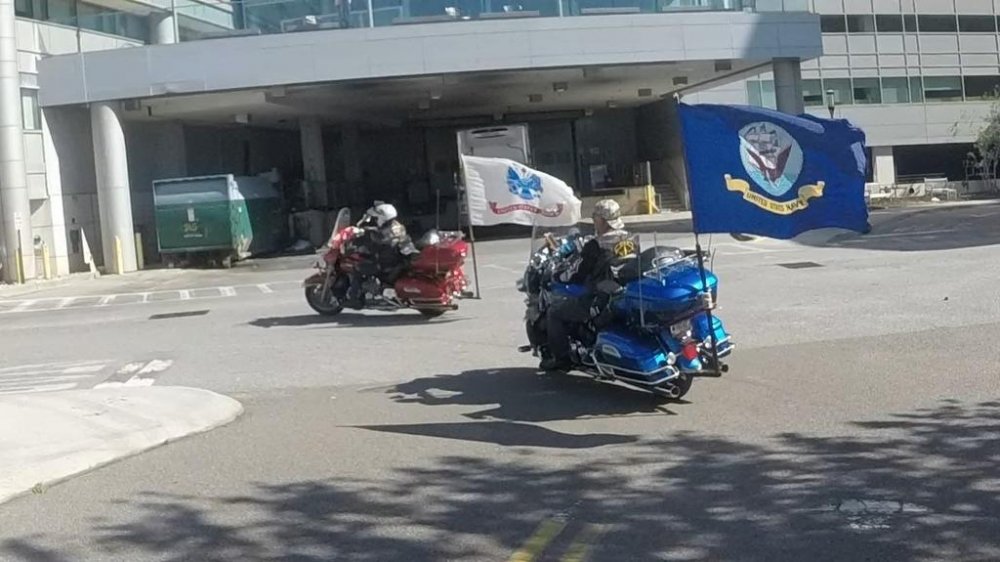 I was looking to repaint mine a few years ago and was thinikng battleship grey myself, not sure about the blue. I did see a picture a few weeks back of a bike in battleship grey with a a gold fouled anchor, it looked pretty good.  I was going to go with the Navy Chief Navy Pride skull and crossbones, I even received permission from the artist to use it, however I never stopped riding long enough to paint it.